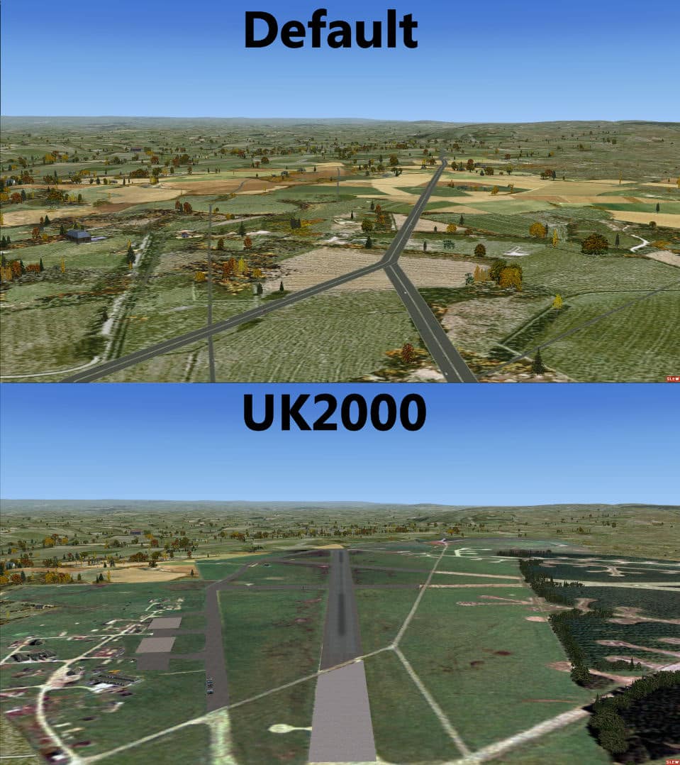 Now, I don’t fly around the UK as much as I used to so I was wondering which version above is more correct. I thought that with FSX London was one of the airports that were detailed. So, I used the best way to figure this out… Orbital Satellite Imagery. More commonly known as Google Earth. Well, UK2000 gets the nod here. You can check yourself. Even the section that looks like a clay taxiway is accurate and the tower is well done, too.