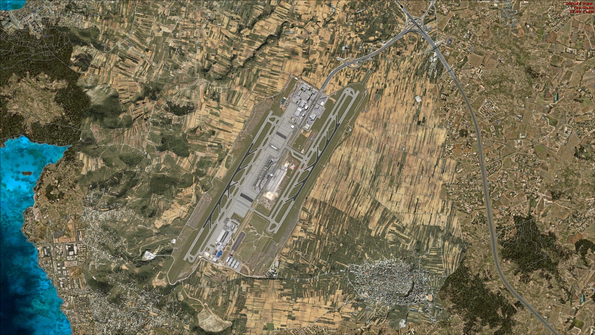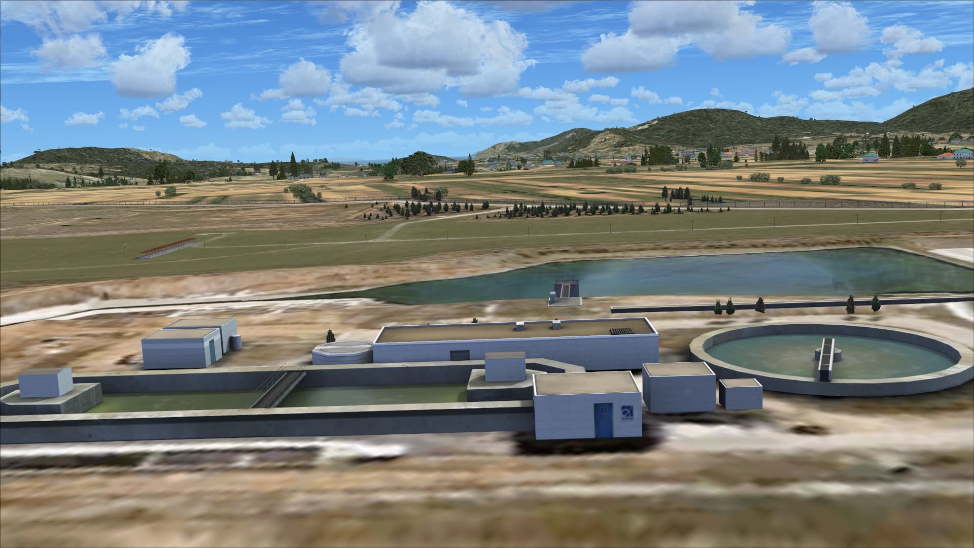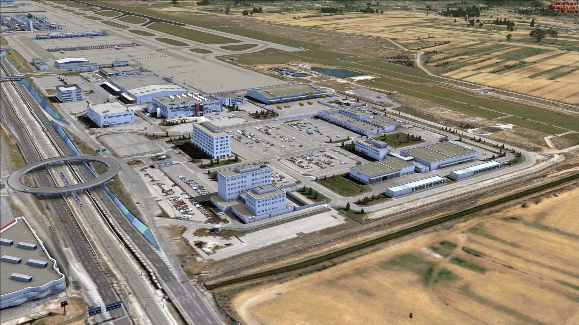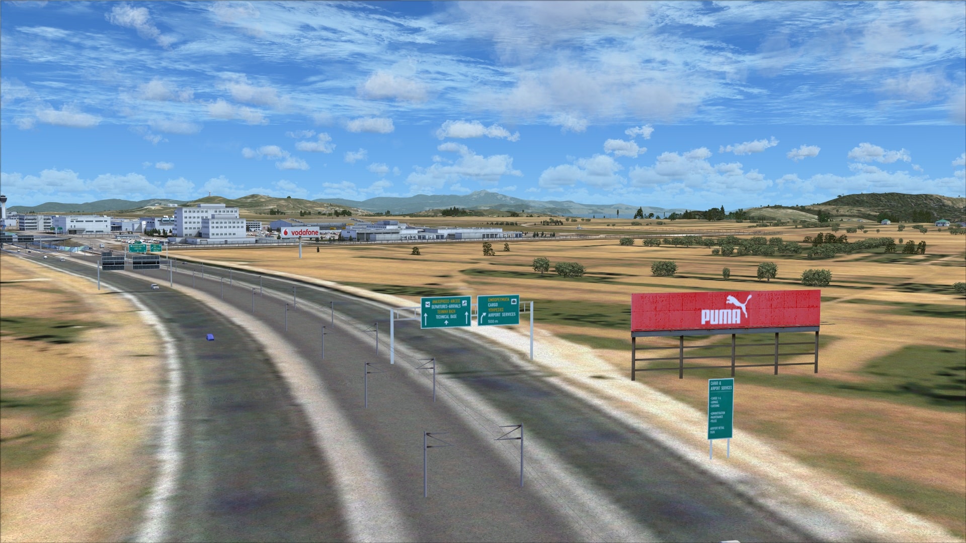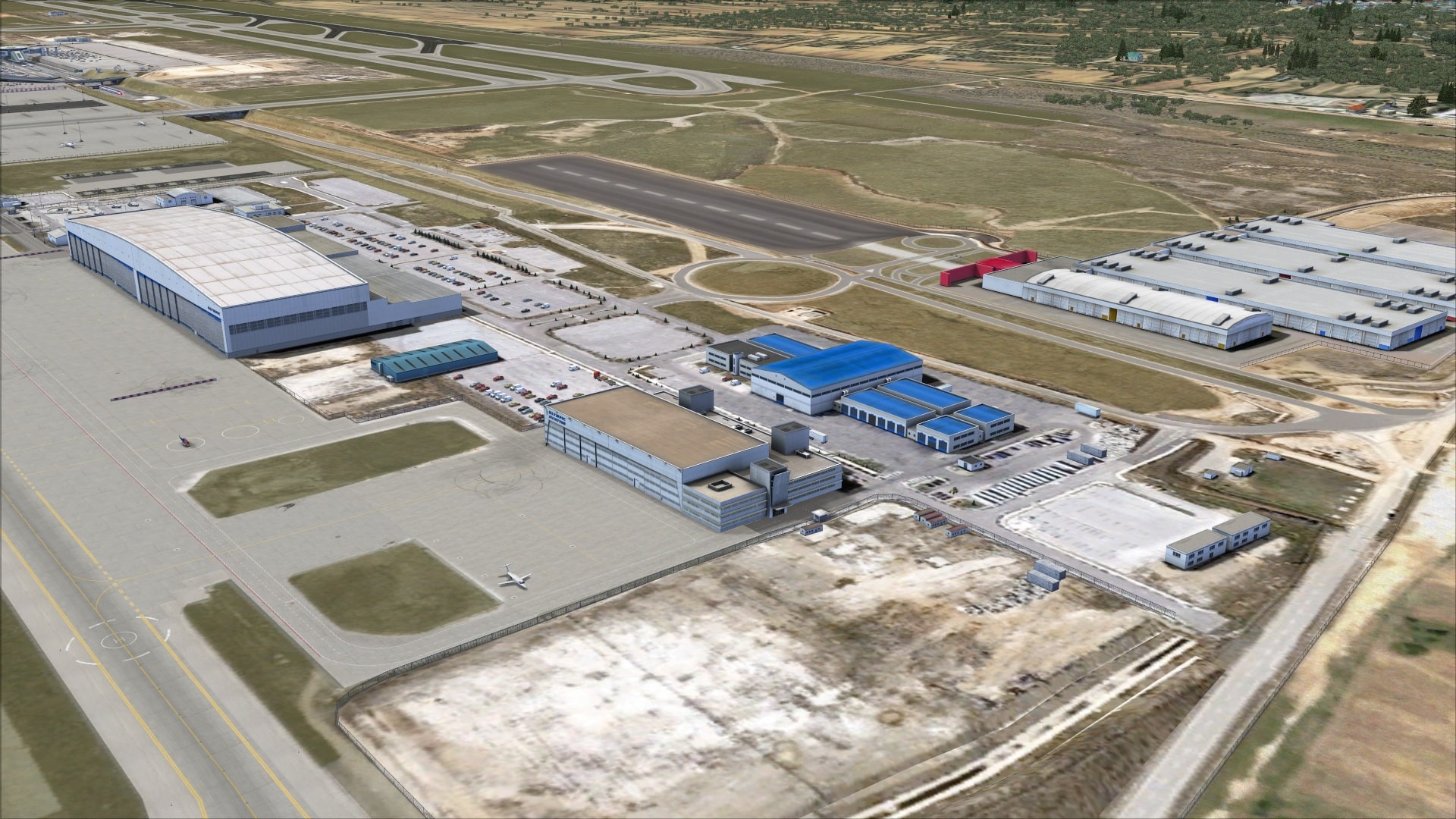 Rural farmland is the predominant geographical feature that surrounds Athens airport. The rendering techniques are the same as those used for the airport; photo textures for the ground along with detailed realistic looking structures.