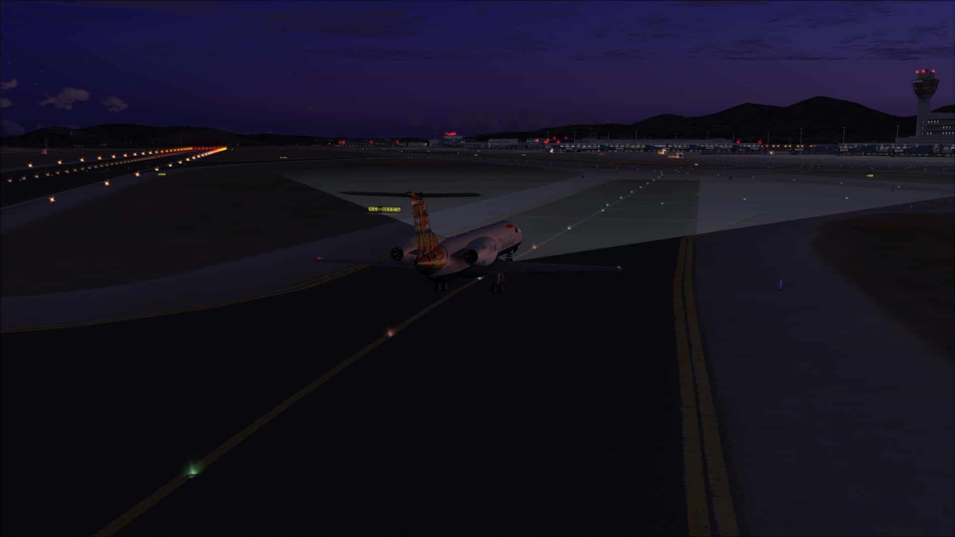 Night time flying into and out of Athens was interesting and very well done. There were several things I saw that stood out for me. The runway and taxiway lighting was especially good. I also noticed as I taxied to the gates that the illuminated taxiway and runway signage lit up the ground directly in front; this was a really nice effect. It is seemingly insignificant things like this that give the scenery that extra touch making it feel like you’re really there.