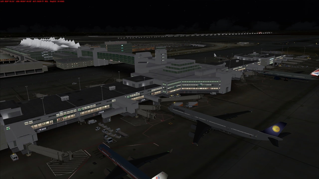 Screenshots of the night lighting of ImagineSim’s KDEN.