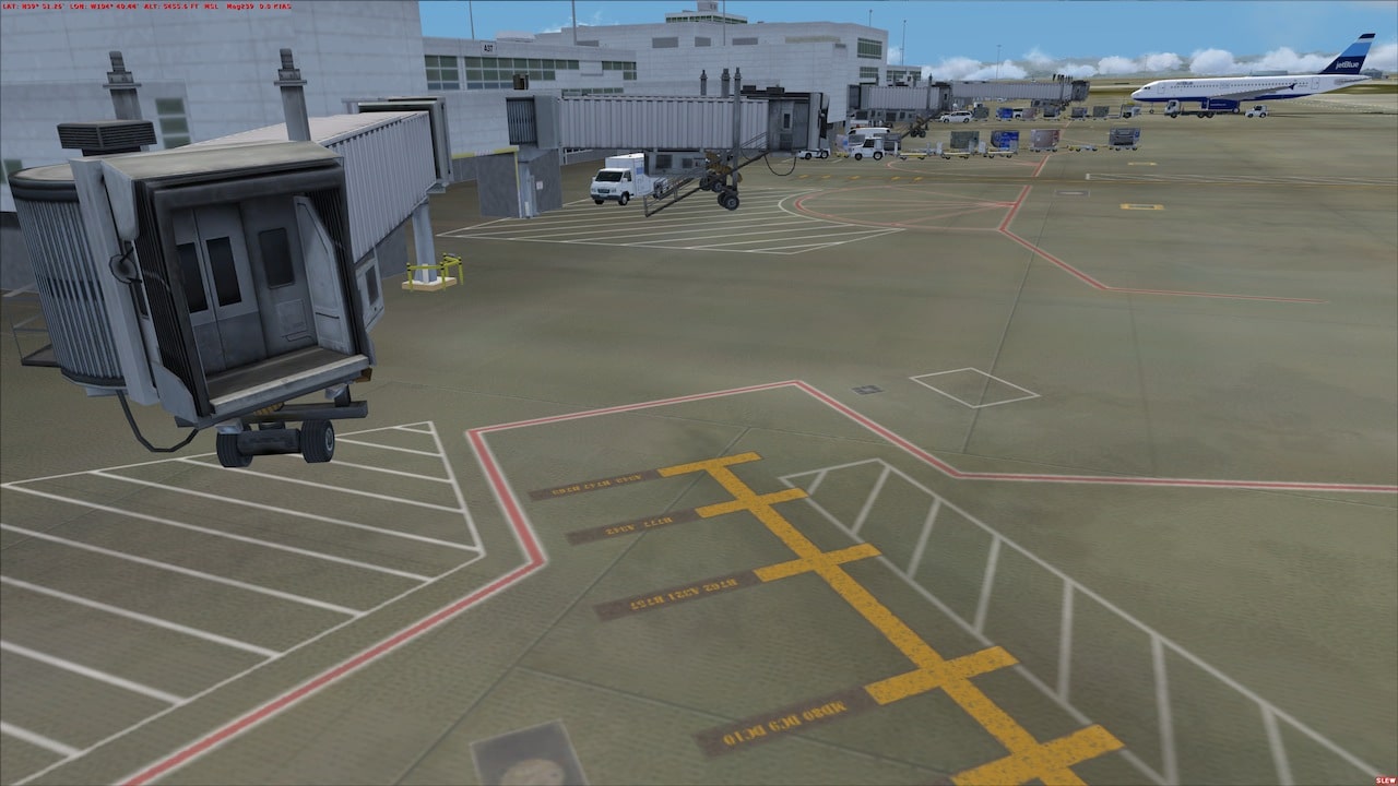 However, not all is good here. The texturing often strikes me as a bit fake, probably because it is hand drawn (or at least seems like it’s hand drawn). The modeling isn’t always as accurate as you’d wish, and outside of the passenger terminal area, ImagineSim has taken some liberties with object placement.