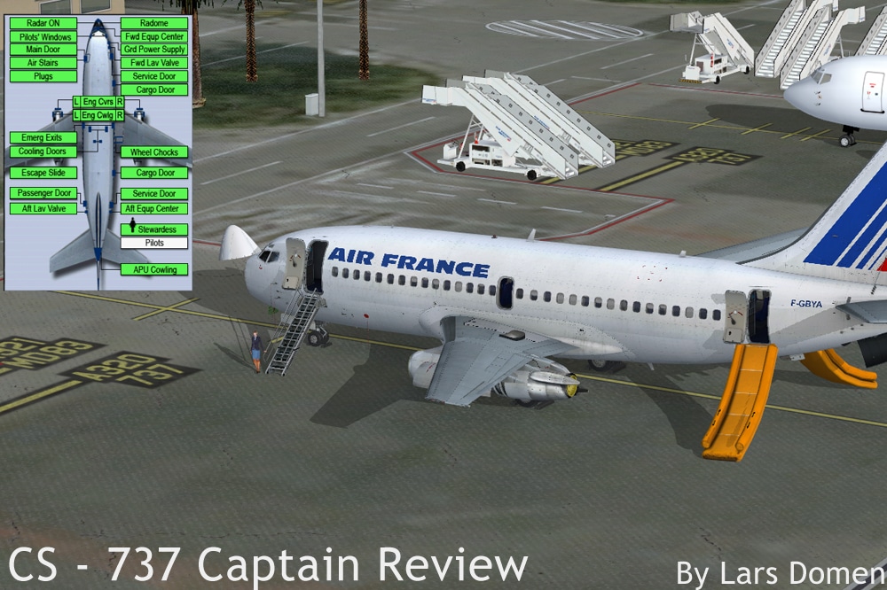 As usual from Captain Sim, the 737 Captain is stuffed with custom animations aside from the usual. With usual, I mean retracting gear, control surfaces, realistic flap retraction, etc. The custom animations here include (among others): the built-in airstairs under the front passenger door, opening emergency doors and service doors, engine cowlings and a lot more. A complete list is on the Captain Sim product page, by the way.