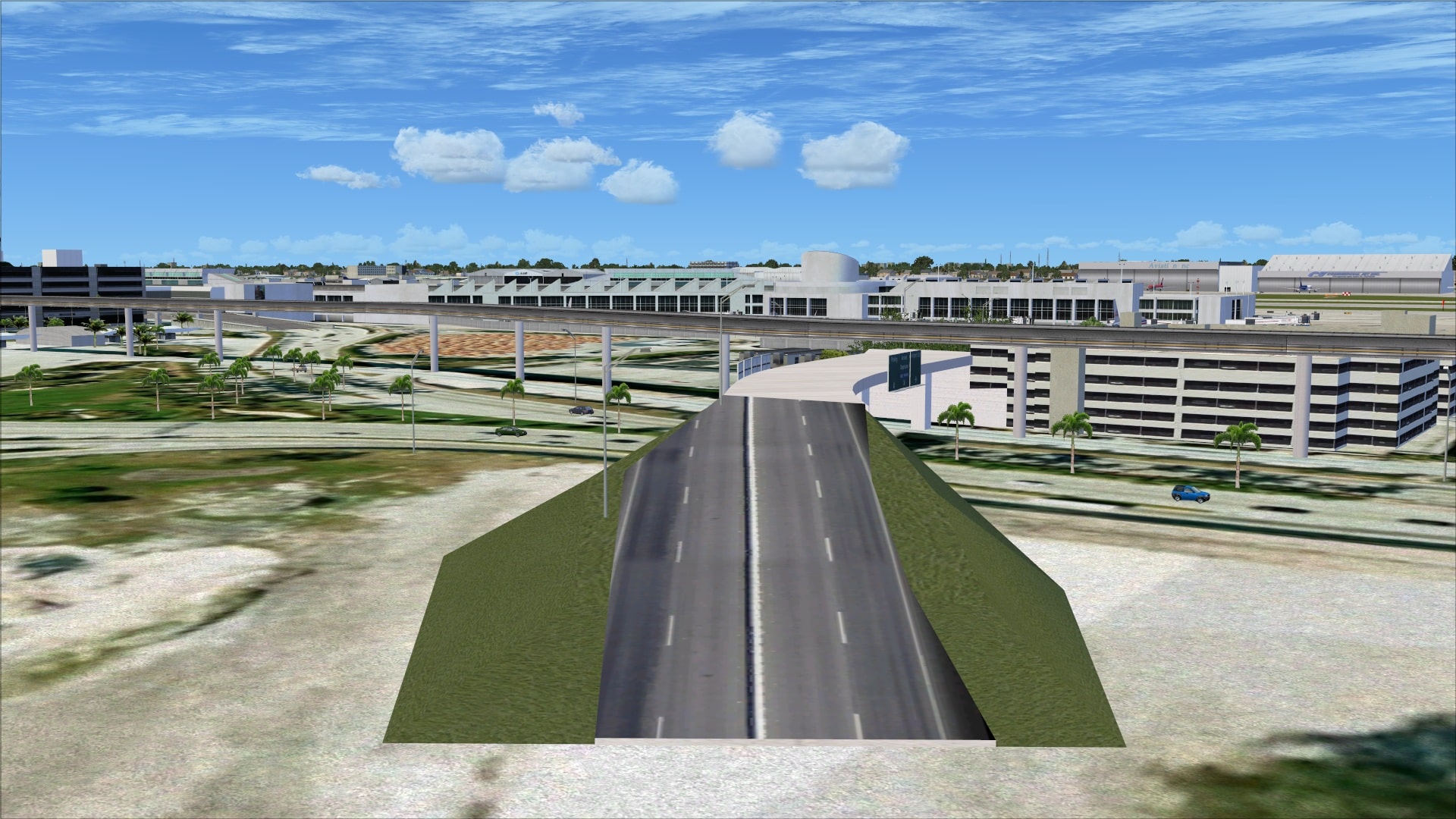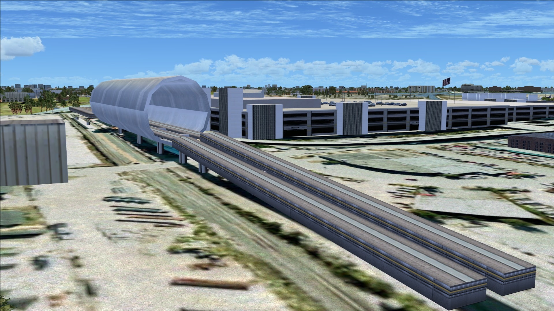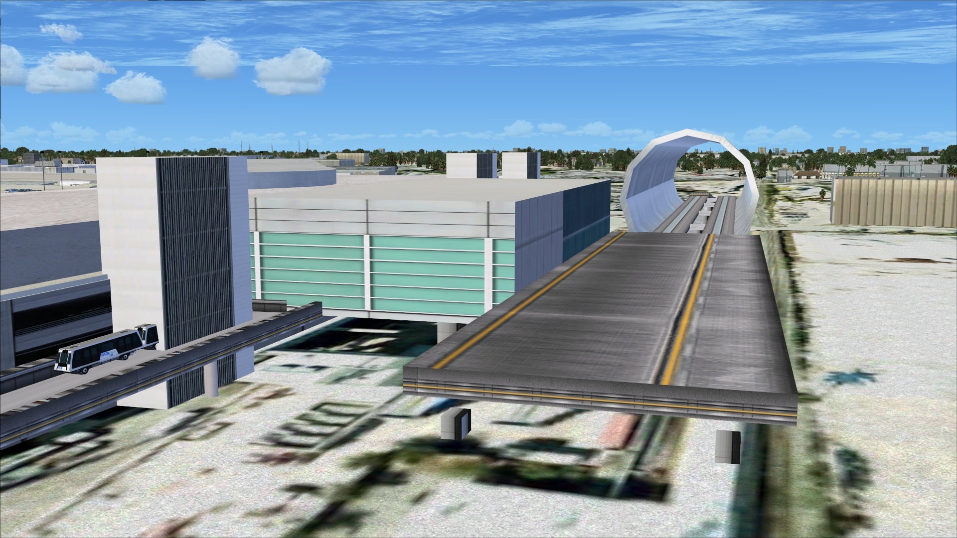 Miami International airport like many other large airports has some form of rail link in place to help passengers get to and from its main terminal quickly. At Miami it is an automated system and is referred to as the MIA Mover. This rail link is an above ground system and it connects the passenger terminal to the nearby Miami Central station. The system is modeled in this scenery and it includes animated rail cars moving along the track between the various buildings. It however suffers from visual glitches. Like many other aspects of this scenery I have to say that from a distance it looked quite good but as I checked it out close up some problems came to light. The movements of these rail cars was quite jerky and they didn’t always follow the tracks, something that is not noticeable from a distance. The other aspect that I felt could have used more work were the tracks themselves. Many of the track sections did not line up and so you had gaps between them. Again this is something you would not notice flying in and out of Miami but it became very noticeable as I took a closer look at the product.