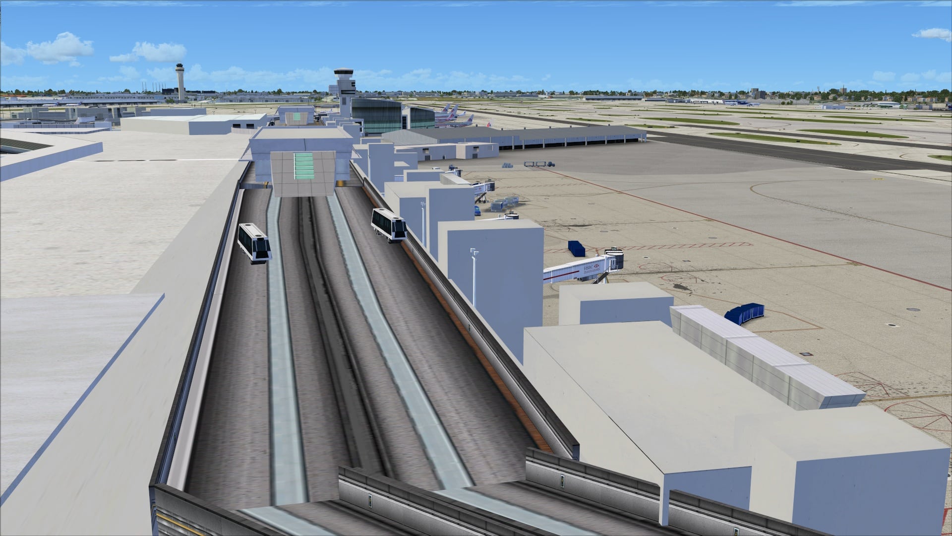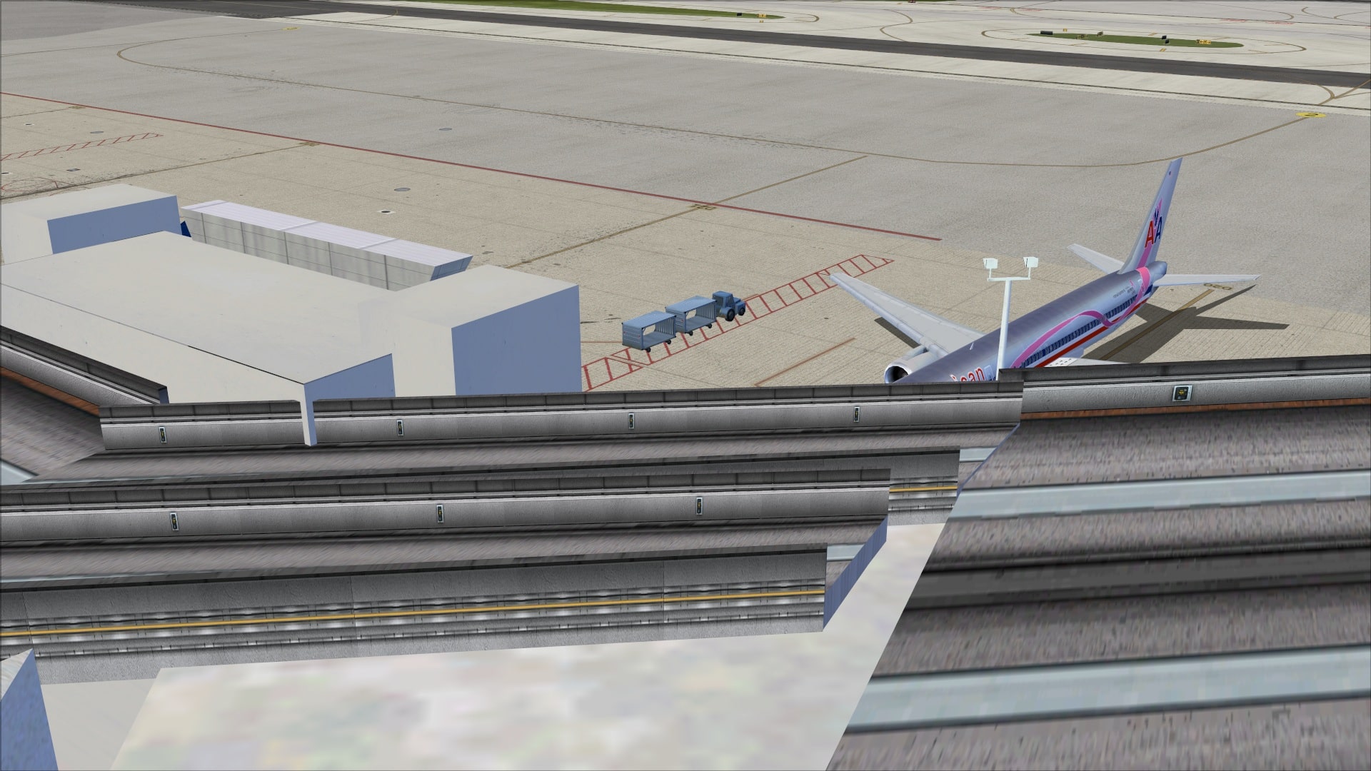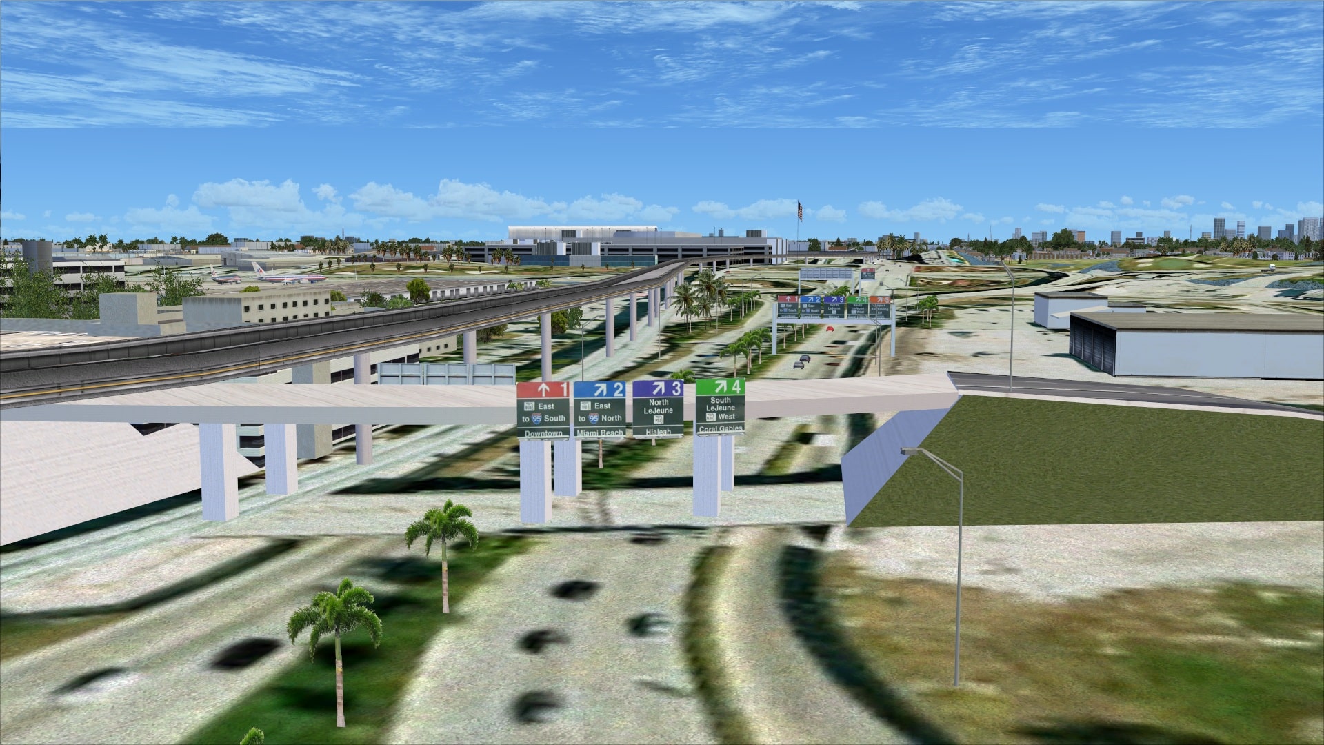 Miami International airport like many other large airports has some form of rail link in place to help passengers get to and from its main terminal quickly. At Miami it is an automated system and is referred to as the MIA Mover. This rail link is an above ground system and it connects the passenger terminal to the nearby Miami Central station. The system is modeled in this scenery and it includes animated rail cars moving along the track between the various buildings. It however suffers from visual glitches. Like many other aspects of this scenery I have to say that from a distance it looked quite good but as I checked it out close up some problems came to light. The movements of these rail cars was quite jerky and they didn’t always follow the tracks, something that is not noticeable from a distance. The other aspect that I felt could have used more work were the tracks themselves. Many of the track sections did not line up and so you had gaps between them. Again this is something you would not notice flying in and out of Miami but it became very noticeable as I took a closer look at the product.