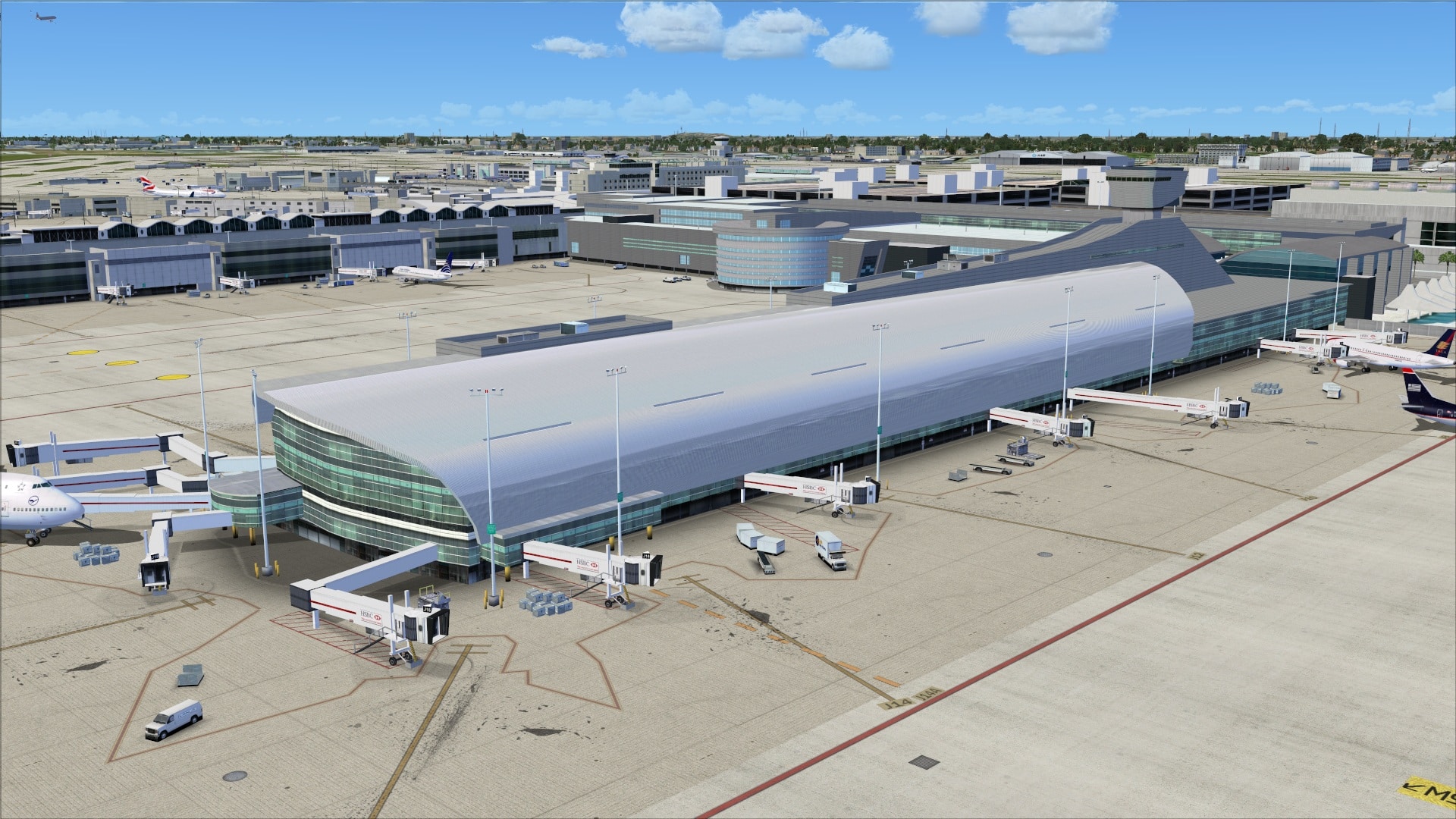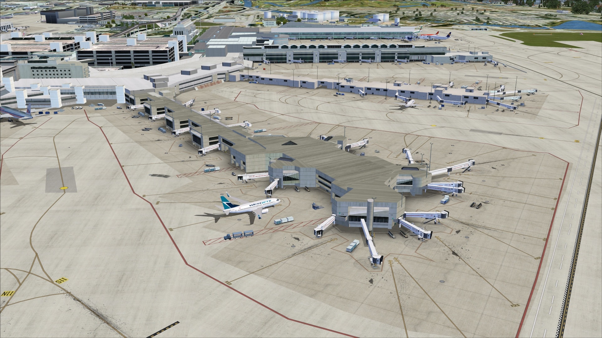 This simplistic approach can be a disappointing factor in one way but on the other hand it may actually be somewhat of a blessing in disguise depending on what you are looking for in an airport addon. The airport is a very busy place and if you are running an AI addon such as Ultimate traffic like I am plus your settings are set for a high percentage of traffic you will have an airport filled with aircraft. The fact that the buildings are simplistic in this case helped keep the simming experience fluid with frame rates at a sufficient level that I was never looking at a slide show even when flying complex aircraft such as the PMDG 737 NGX.