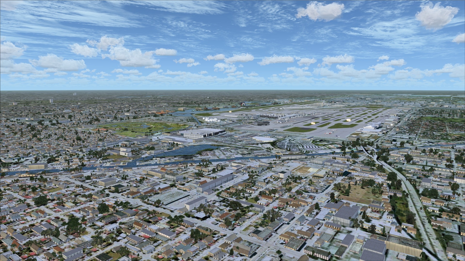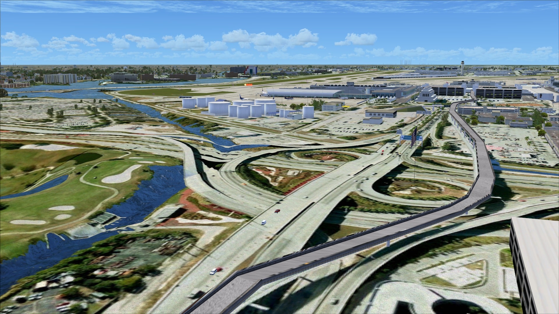 As the developers state in their highlights, the area surrounding Miami International airport has been recreated and enhanced with photo scenery and hand placed custom autogen. Looking closely there are some interesting buildings south of KMIA near Lake Joanne.