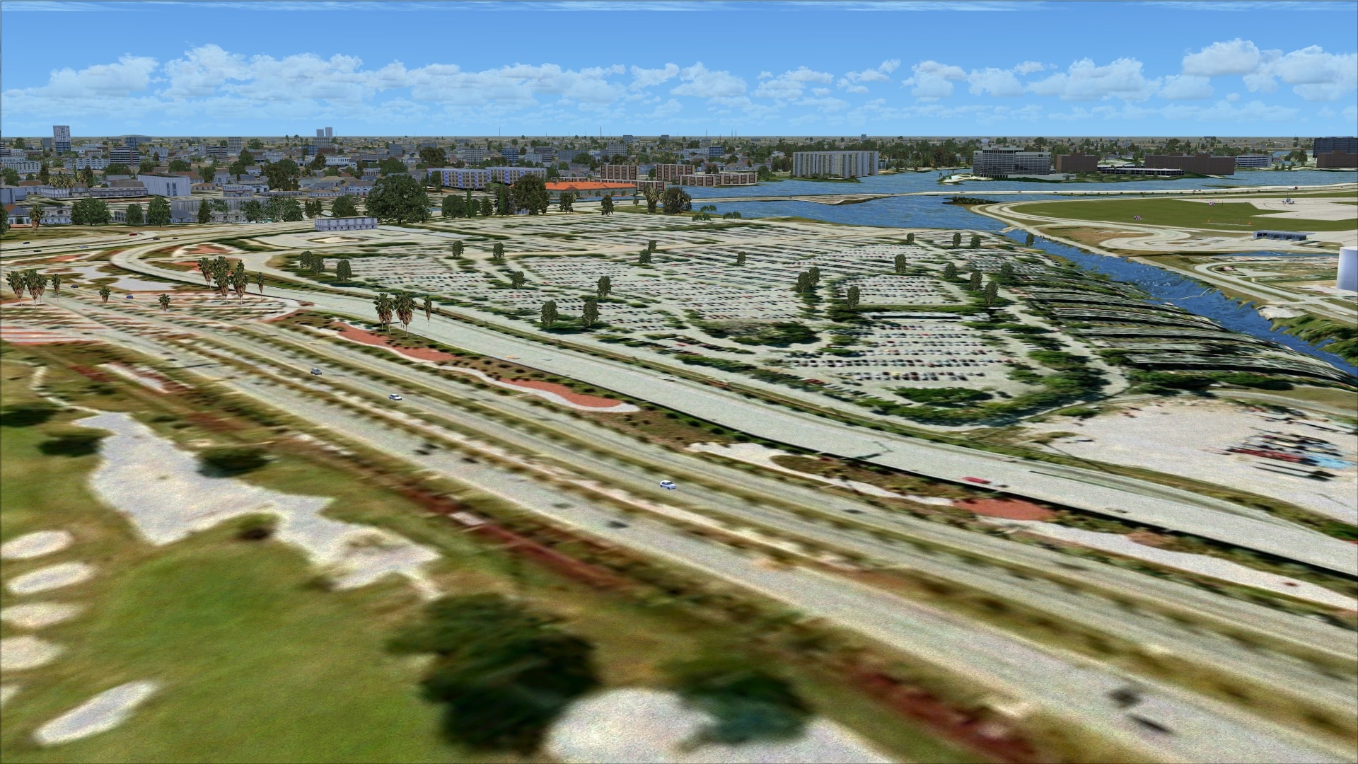 The ground textures used for all other areas of the airport appeared blurry especially at low altitudes or at ground level. I am referring to the grassy areas, parking lots and roads within the airport boundaries. For the most part I felt that they were inferior to those found in their other FSX products.