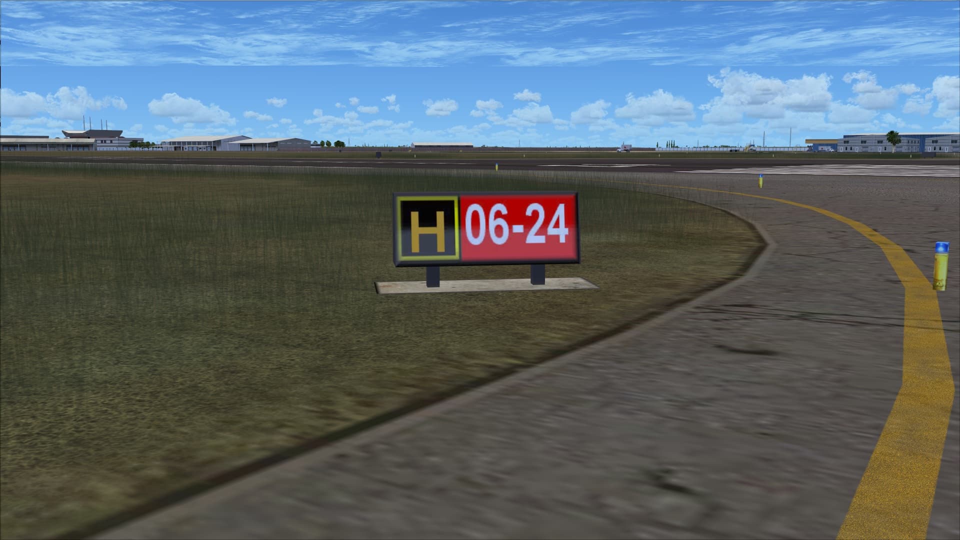 The airport scenery includes some basic objects such as runway/taxiway lighting and signage. The quality and placement are good, for the runway/taxiway signs they include concrete pads that serve as the base and that adds a little extra something to the quality of these objects.