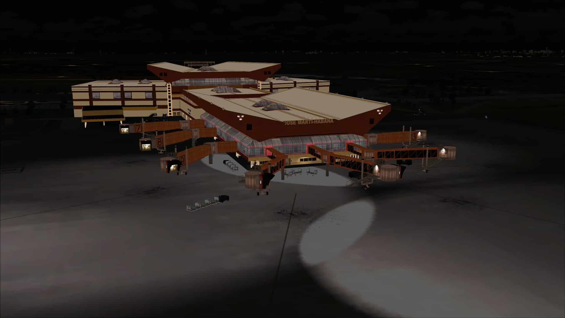 Apron lighting consisted for the most part of large white blobs of light, sometimes their placement seemed to make sense and other times not so much. A glaring example of this can be seen at terminal 3; the large circle of light extends unrealistically under the building. It wasn’t just the placement though part of the problem had to do with the fact that there were no obvious sources for this light to be coming from. There are no light poles in this scenery.