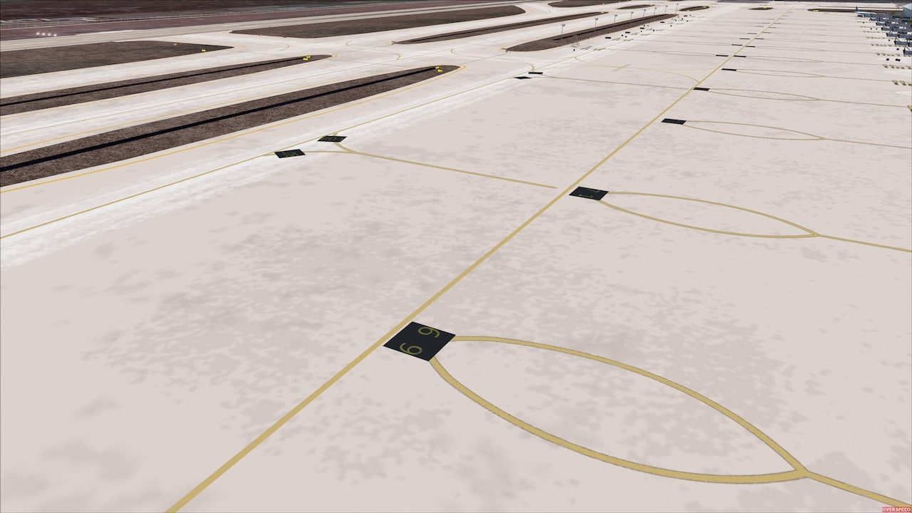 The taxiway textures are much the same as the apron textures. Logical, because they flow seamlessly into each other. The taxiways do offer a bit more detail than the apron, but it’s still quite far from what I would have probably wanted to see. There’s also some patches which are differently colored. This isn’t bad, it’s how it should be, were it not for the fact that these differently colored patches don’t look too good. They offer more detail then the white taxiways, but the textures that form these details are rather blurry.