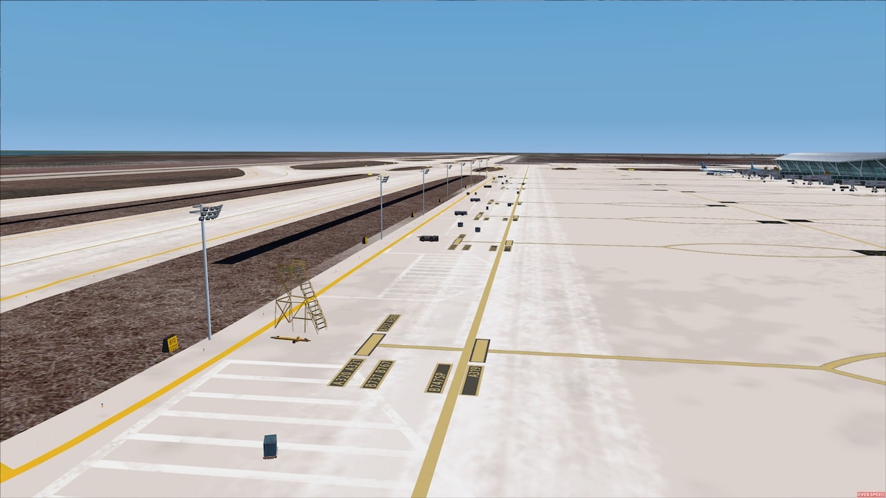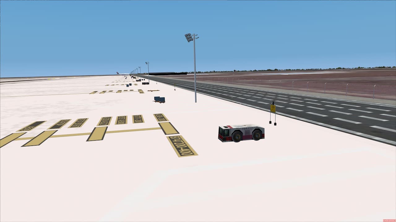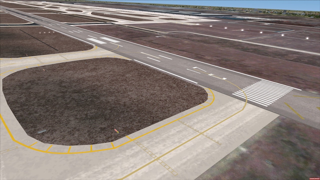 The runway textures are fortunately a lot better than the taxiway textures. They are much more detailed and less blurry, because the texturing is finer, as opposed to the rather crude detailing of the taxiway textures. In the above screenshot you can see this pretty well. At the same time I’d like to point out the black taxiway texture, which is an example of what I said earlier: it is more detailed than the white taxiway texture, but due its rather blurry due to crude detailing. Furthermore, with the white strips surrounding it, it looks out of place which drags down the entire look of these black taxiways. Finally, the taxiway textures here appear strangely grey. I’m not sure why that is, but it doesn’t look right…