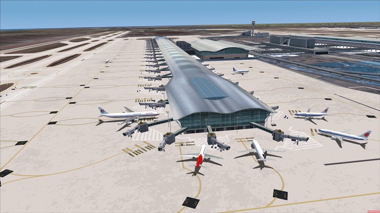 Shanghai has two airports. The first and oldest is ZSSS: Shanghai Hongqiao international airport. This airport lies in the middle of urban districts, so when the city started growing all around the airport and the airport had to expand, they faced problems: there was no space at all to expand the airport. And so, they built a sparkling new one: ZSPD, Shanghai Pudong international airport, so called because of it lying in Shanghai’s Pudong districts. Not only is it centrally located in East Asia, it’s also one of the biggest airports in East Asia. As such, it’s perfect for a flight across East Asia: Lots of other airports are within a two to three hour flight, it is visited by tons of airlines flying to the most exotic places imaginable, and it’s also a marvel of Chinese architecture. Elite-Air Studio, a rather unknown developer has made both ZSPD and ZSSS for our flying pleasure. ZSPD (Pudong) will be reviewed here and now.