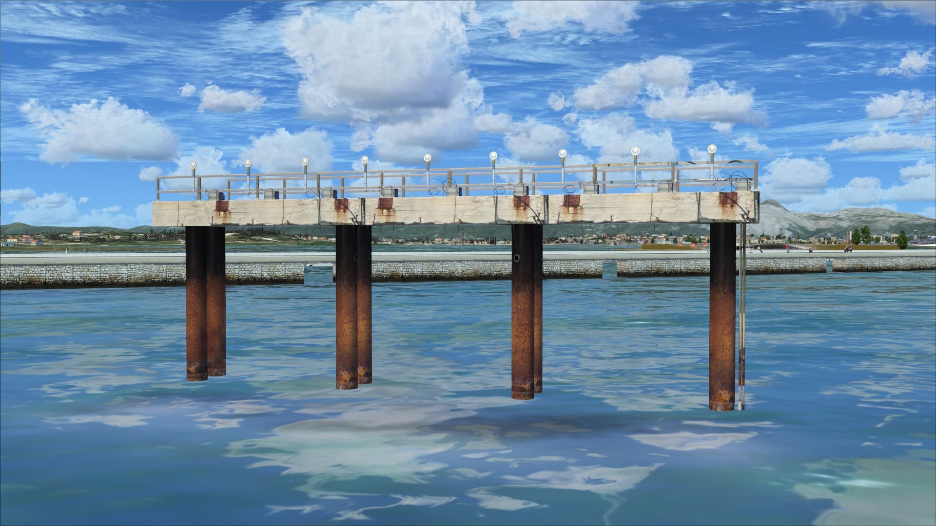 There are also the runway 35 approach lights. They are meticulously reproduced and include such intricate details as pieces of barbed wire hanging on the cross braces and rust stains on the concrete. They clearly spent lots of time and effort in making these and it paid off with some great visuals.