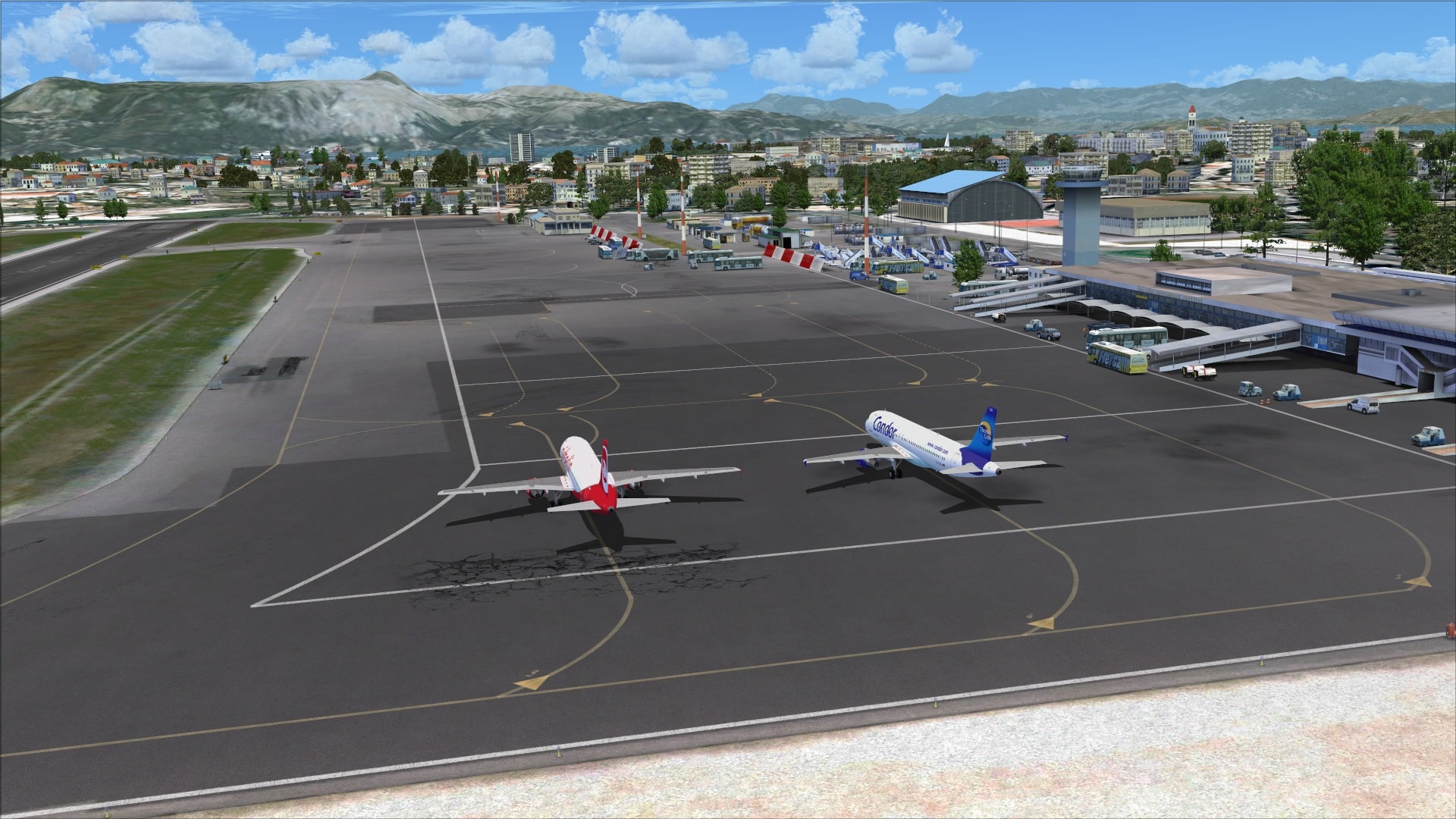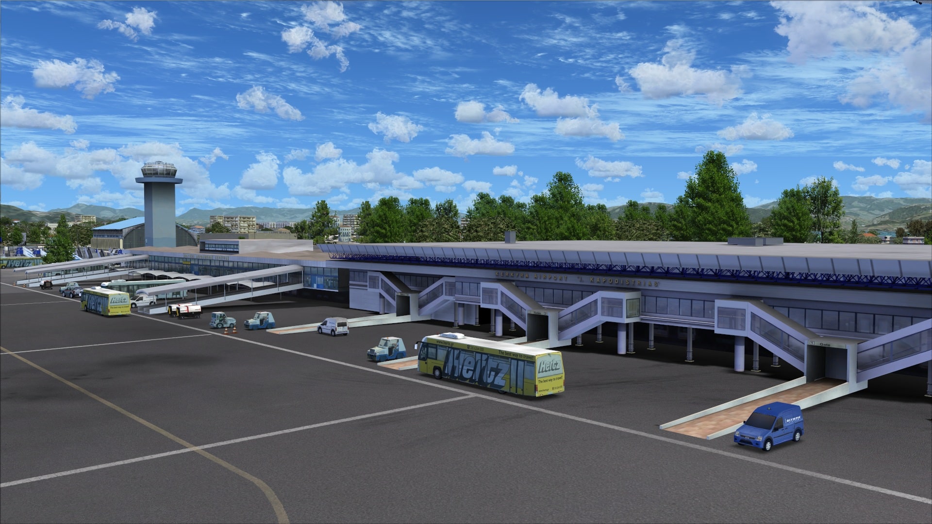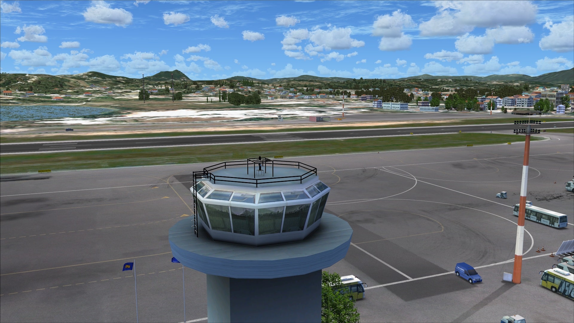 The airport includes AESLite so that means you get a number of different animations all of which can be enabled or disabled via the Corfu X manager panel. They include vehicle traffic in the apron and parking areas plus boat traffic off the end of runway 35 and around the island of Corfu.