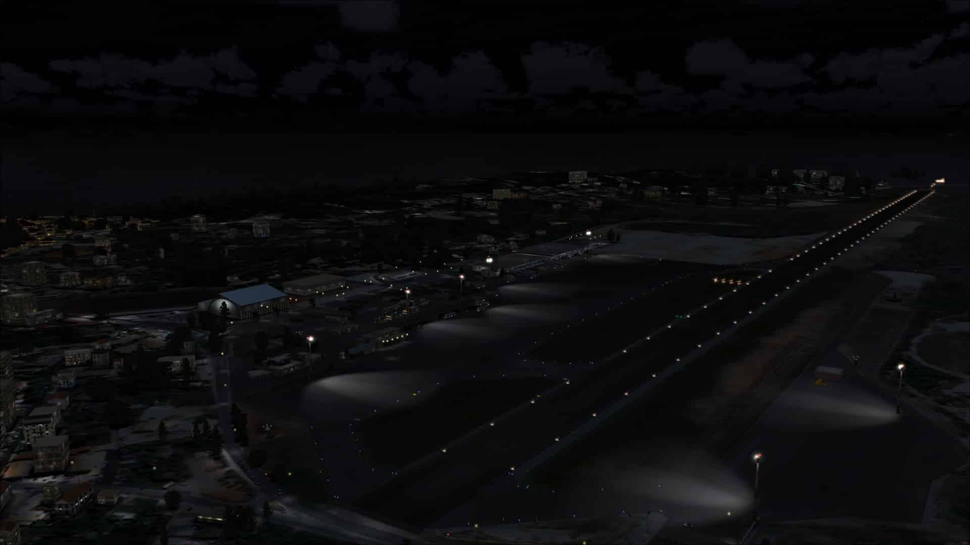 Night lighting was good; apron lighting, ground lighting including the blue edge lights, lit taxiway signs and buildings displaying both interior and exterior lighting plus night textures. All were included and looked realistic.
