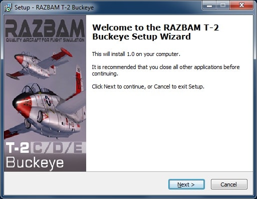 if you wish to find these manually, they are contained within your FSX installation folder, in a the ../RAZBAM/manuals and ../RAZBAM/Paint Kits subfolders. Your Simobjects/Airplanes folder will now also contain four additional subfolders, containing the T-2B, T-2C, T-2D&E plus the T-2J-1S aircraft respectively.