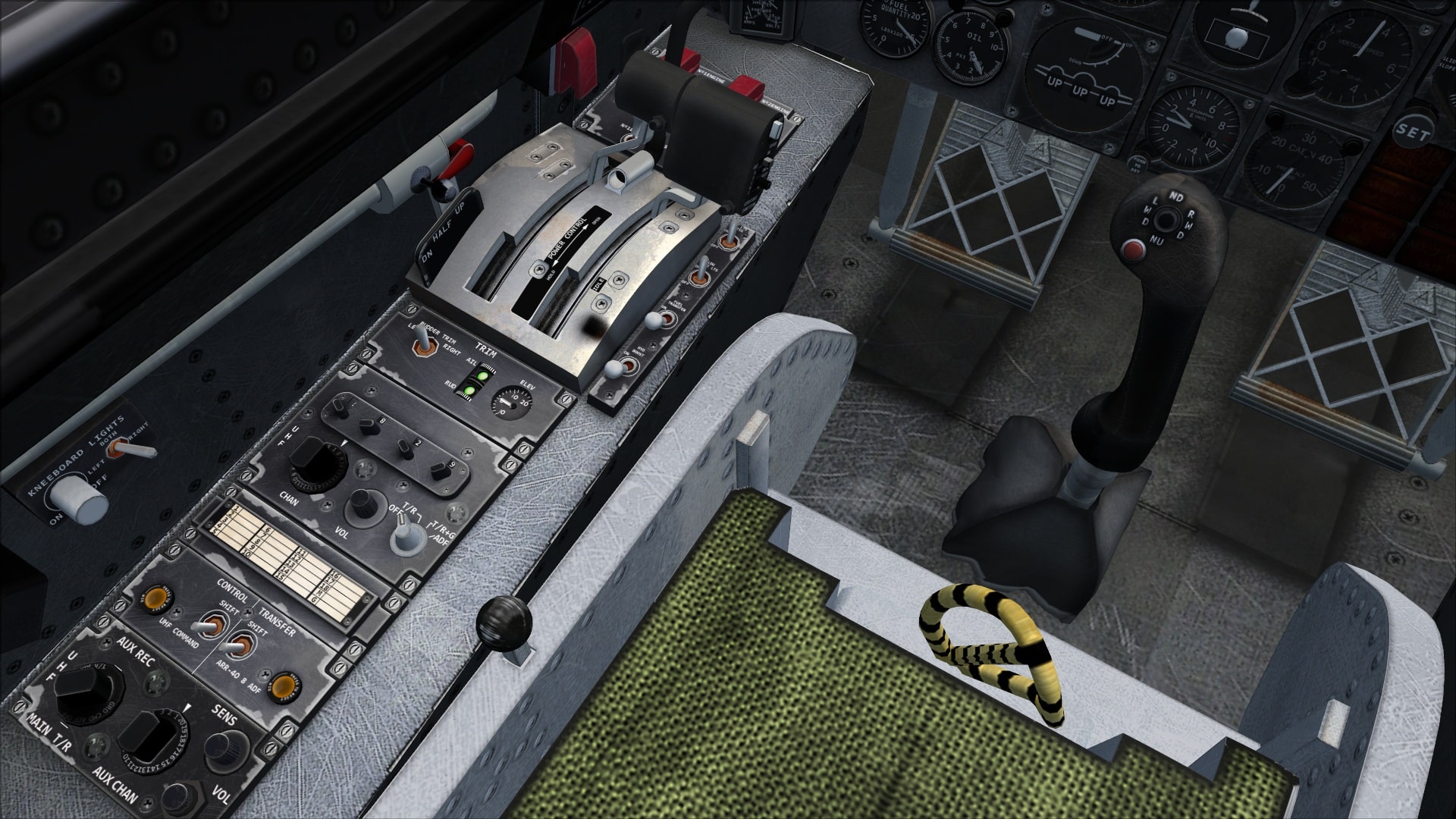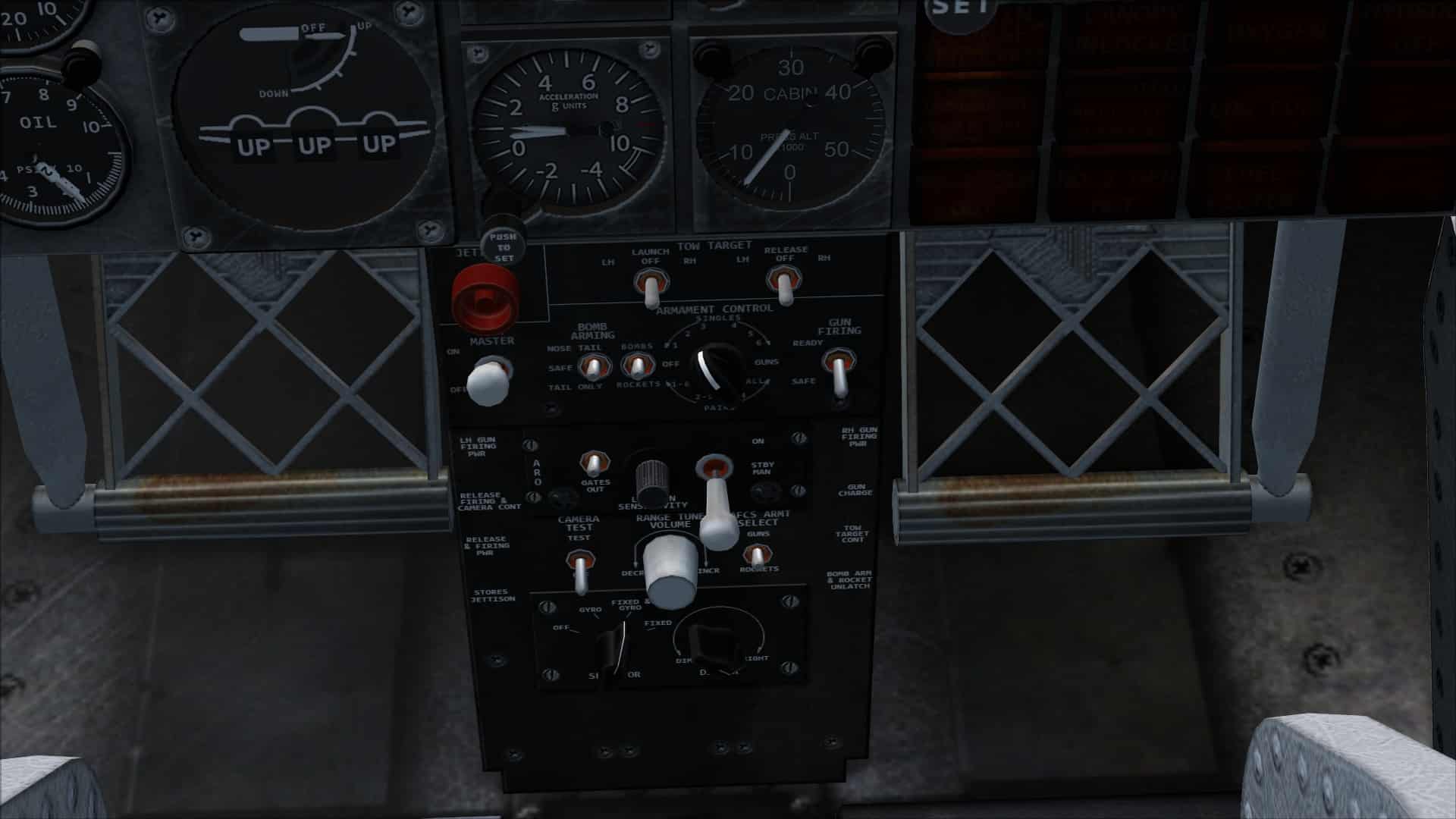 Both front and rear seat positions are modelled with full panels appropriate to the position and aircraft that they sit within. Although all the aircraft included in the package have similar systems, there are differences beyond the simple single versus dual engine panels and these are recreated here.