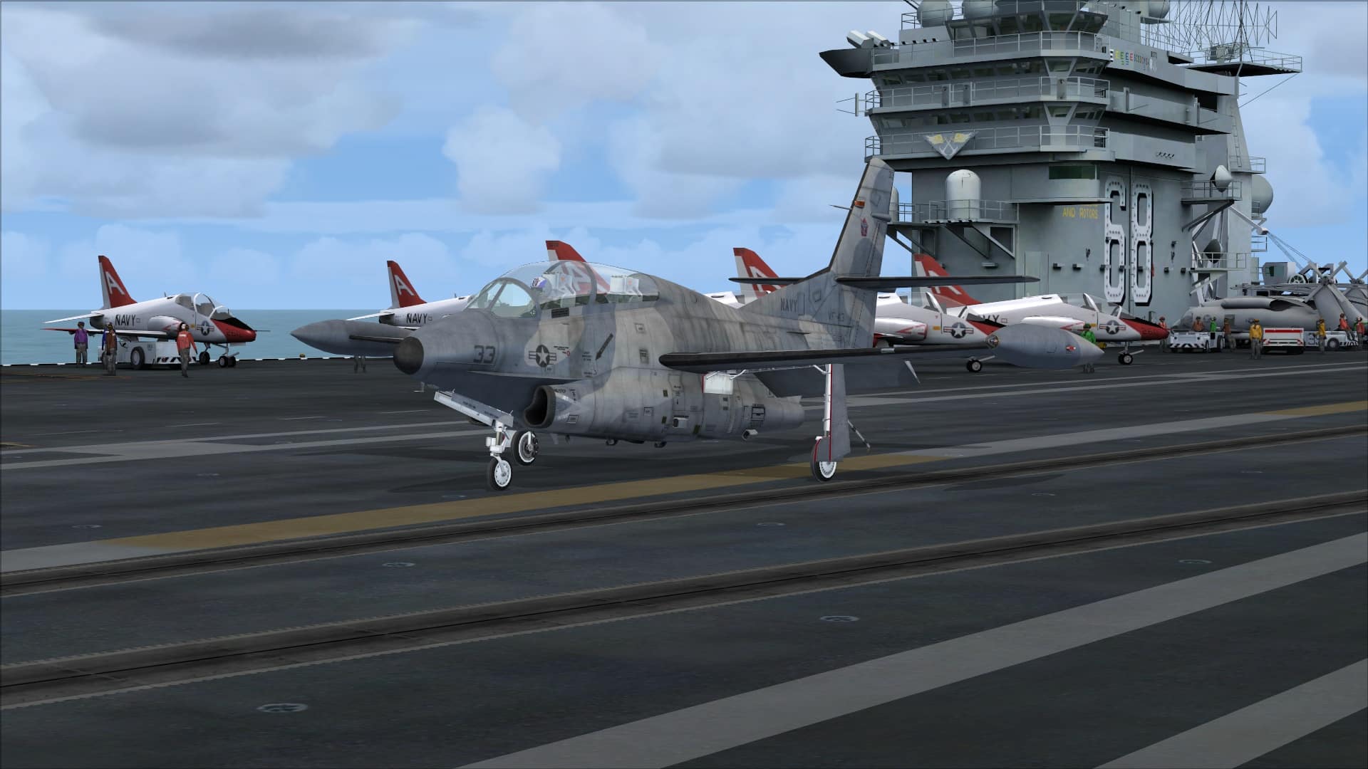 Additional Information: USS Nimitz Aircraft carrier by Javier Fernandez, available at Avsim, used with AICarriers by Lamont Clark, also available at Avsim. Weather generated by ActiveSky Evolution.