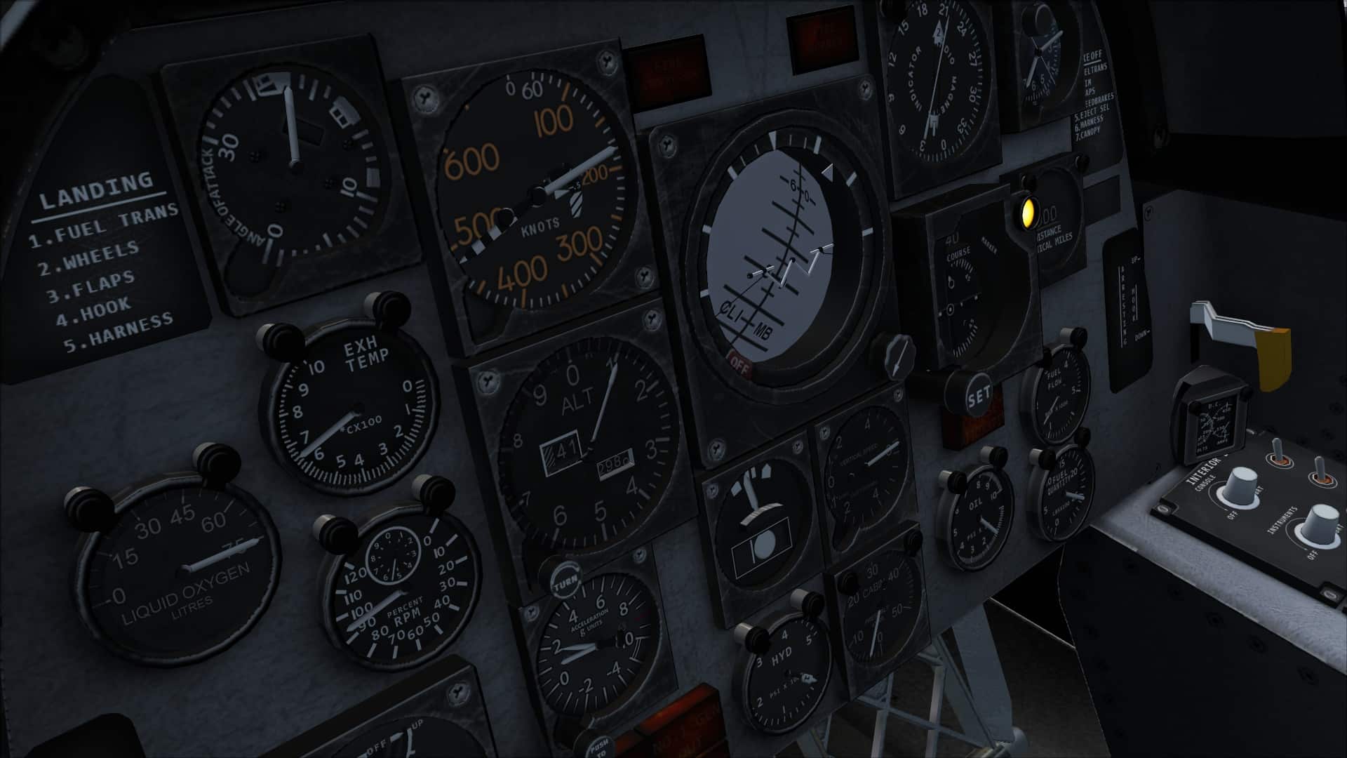 Given the price point that the package has been released at, the lack of things like absolutely every switch being clickable or a full and complete “consequences” package for exceeding limits are more than excusable. This is intended as a fun aircraft to operate, while providing an idea of the limitations of the real-world jet, not a systems trainer. The missing checklists and reference documentation is less excusable and would have been really quite useful.