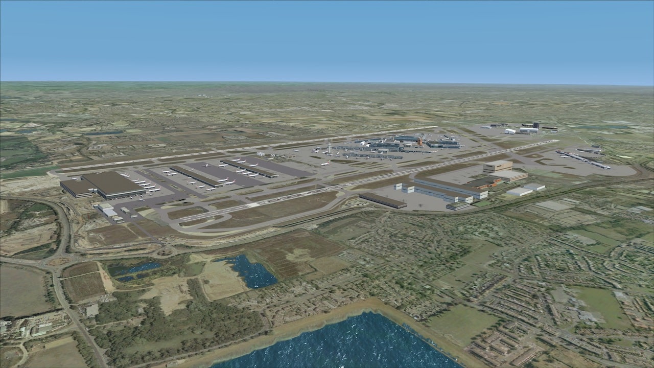 We have seen two versions of Stansted, the VFR Airfields rendition and the Extreme version, both by UK2000. It should be without a doubt that the UK2000 Extreme version ends up in Ultimate London. Its combination of a really good ground image, really good modelling and texturing and a nice level of detailed plus good performance, is a winner. VFR Airfields sure is nice when viewed in the context of the package in which it is supplied (which includes 80 or so more airports!), but since we are going for ultimate in this review, Stansted Extreme is the way to go. UK2000’s Stansted Extreme will be used for Ultimate London.
