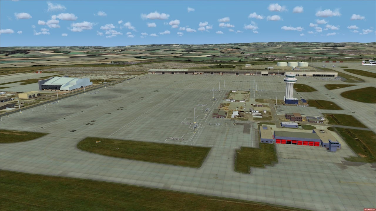 The terminal area doesn’t look like much. It’s basically several hangars, and a really small terminal building, seen in the second shot. Despite its size, it’s a cute little thing though. The modelling seems a bit simplistic, but the texturing is actually really good. I like that there is some added detail, such as the parked cars behind the terminal building. It’s obvious that because this is a smaller airport, more time was spent on refining the airport than getting it to look somewhat like the real thing, such as would be the case with Heathrow, for example.