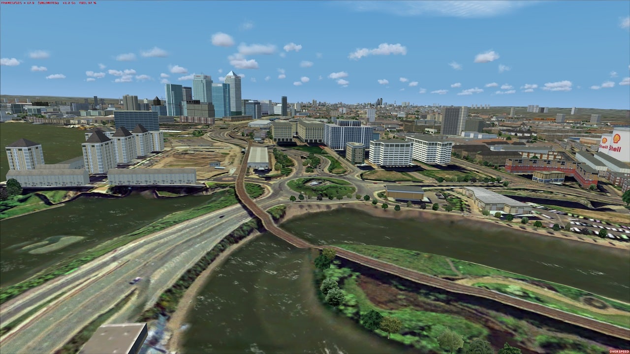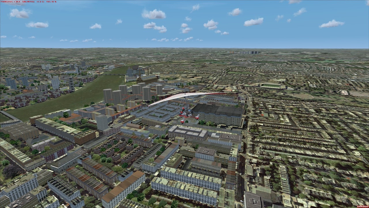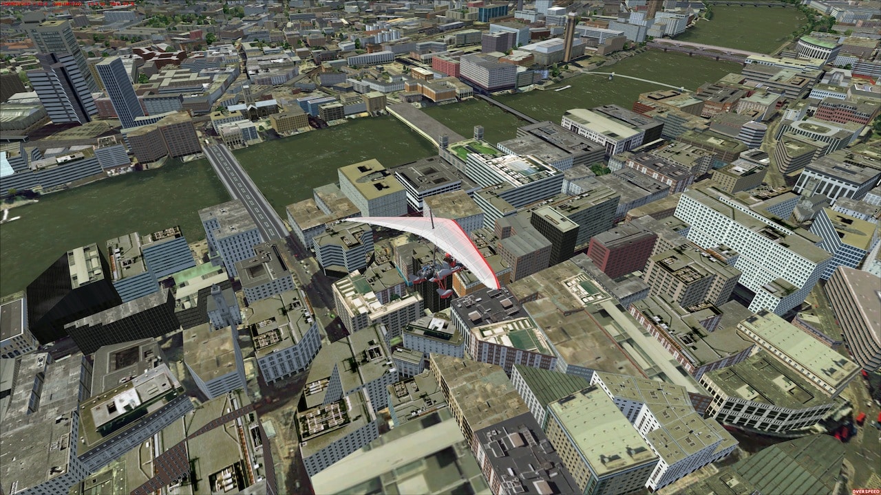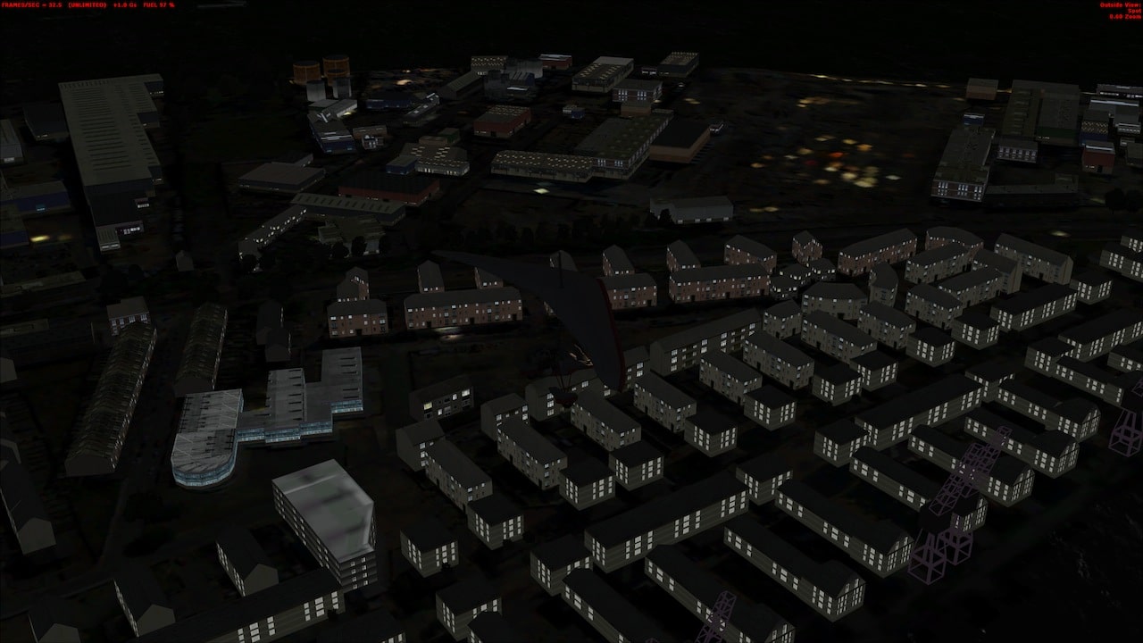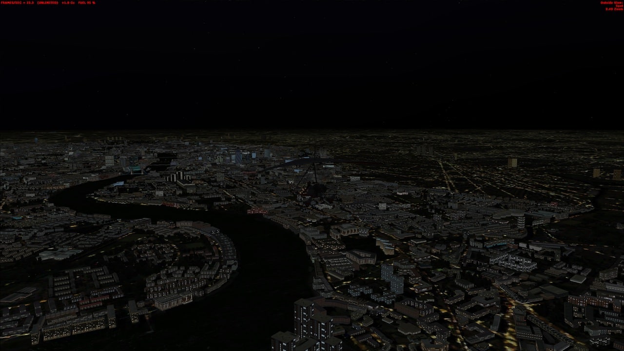 Concluding, what to say about this scenery… There are some very good things about it, such as the resolution and image quality. At all times, it’s clear what you are looking at, and small details, such as cars, are easily distinguished from the surroundings imagery. The lack of completely ground-occluding clouds is also a big plus, but on the other hand, the patchwork of colours and mesh-related problems detract. Also the night scenery, while good in itself, features rather sparse lights.