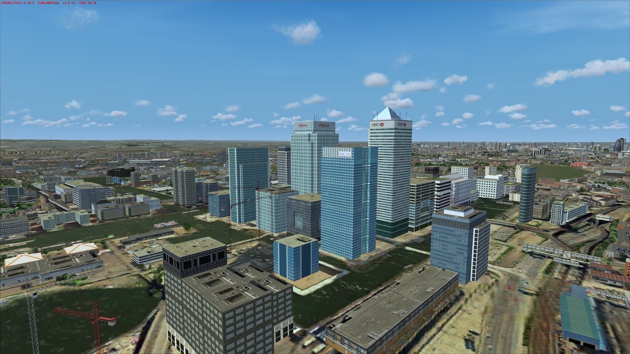 The most iconic airport of all is probably London City. With its position close to London’s financial district, it is an interesting, unique and performance-heavy place to fly in and out of. UK2000’s VFR Airfields rendition was light on FPS, but mostly because it didn’t include much. Aerosoft’s London City scenery was a lot better. I found it a bit low on the details, even though the modelling and texturing of the buildings was quite good. Still, I wasn’t a fan of the ground texturing. The ground markings were too saturated, making for a rather bright yellow that doesn’t seem to really fit well within the rest of the scenery. Do keep in mind that Aerosoft’s version is rather old. Still, for an Ultimate London, it seems that UK2000’s rendition of London City will be the best. Being a very modern scenery, it includes really high-detail ground textures and very good modelling and texturing. The details in the scenery combine to make a very good and lifelike rendition of London City airport. UK2000’s London City Extreme will be used for Ultimate London.