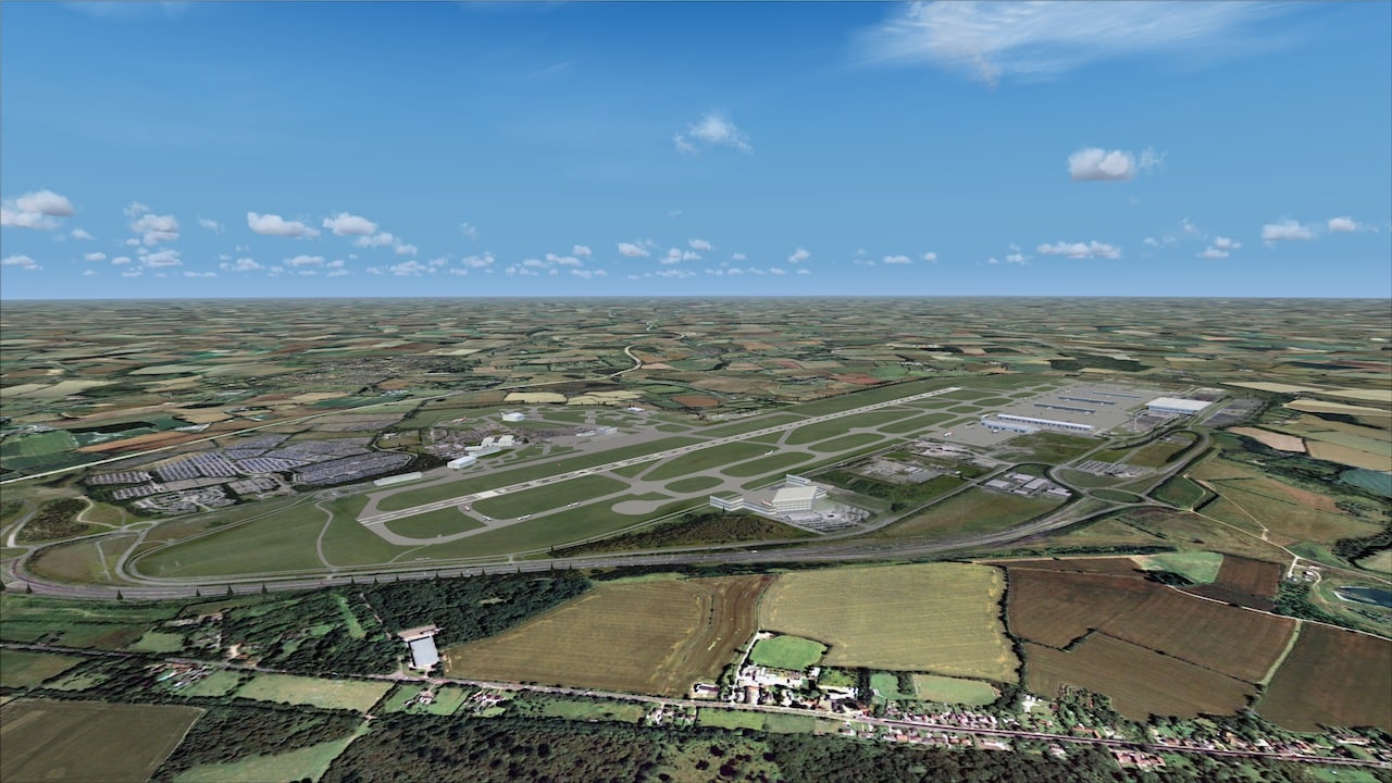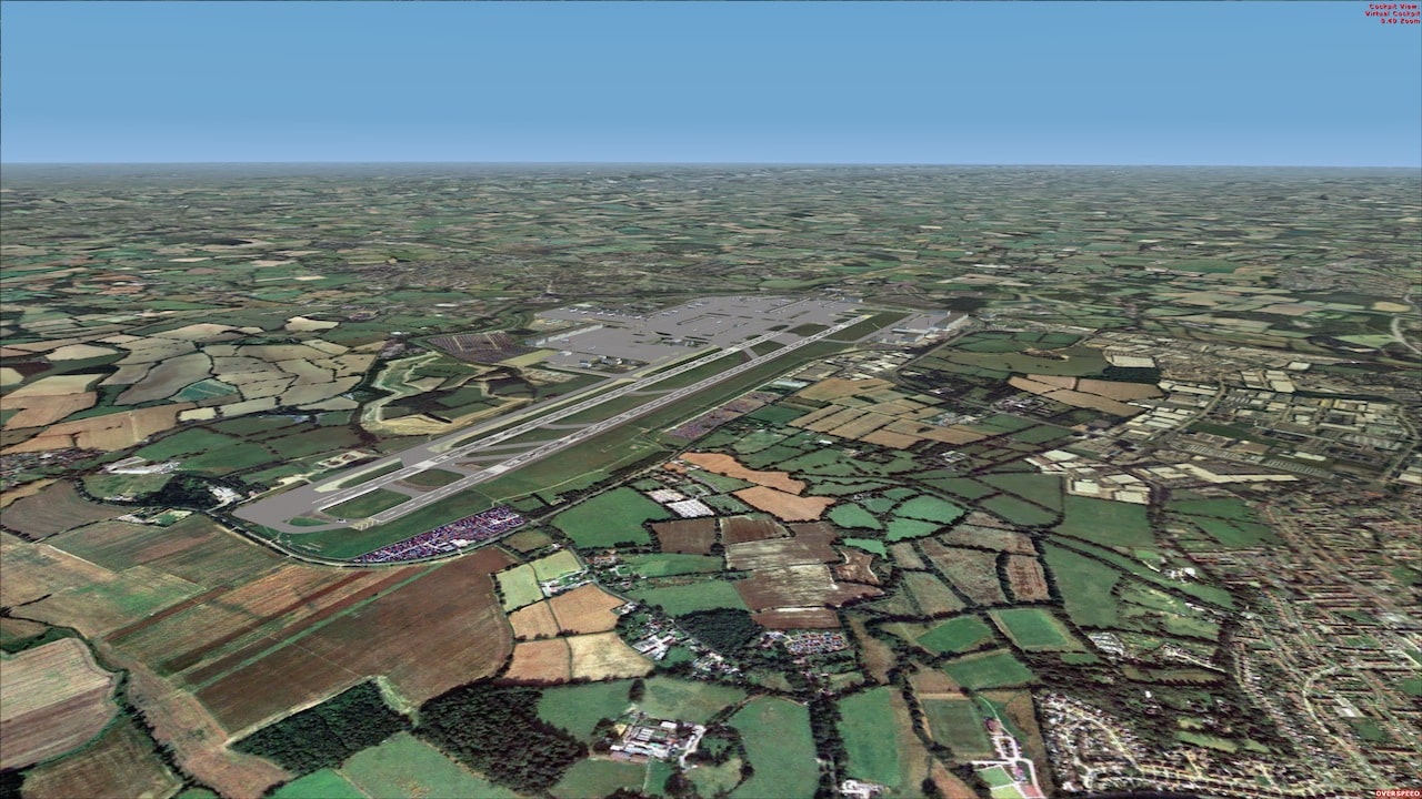 We move on to another London airport: Gatwick EGKK. Gatwick is probably the second largest airport by passenger number around London. Major aircraft, such as Boeing 747 aircraft, visit Gatwick all the time. As such, it’s good news that the colours at Gatwick are a lot more realistic around Gatwick than at Stansted. It’s browner than the bright green at Stansted, but I can imagine that one might find the different patches of colours in the distance disturbing.