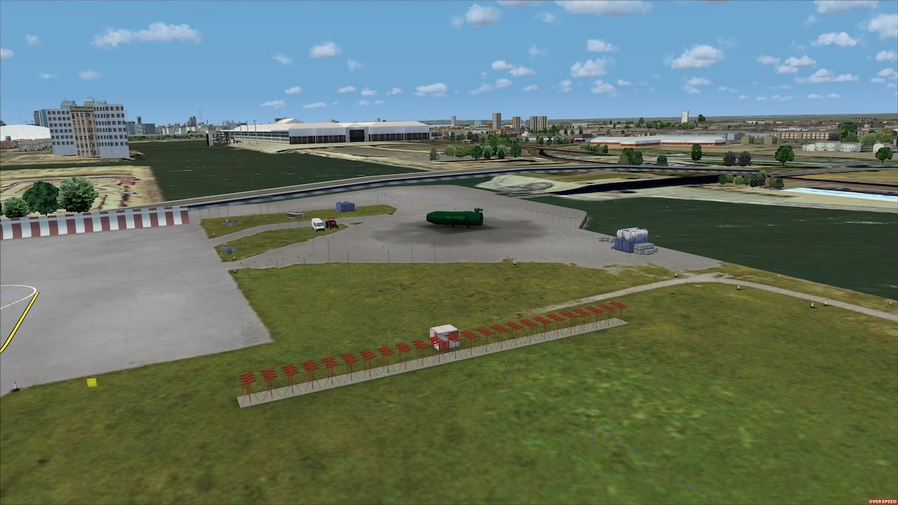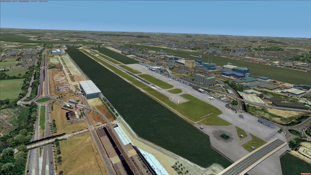 Honestly, I was wondering in the beginning if I wasn’t simply looking at a default version of the airport, but this can’t be: look at the runway, and you’ll see typical English runway markings which can’t be of a default London City airport. However, there is no airport building whatsoever, which I did find a bit of a disappointment overall. As such, there isn’t much to see, although I will mention that it fits nicely in London VFR X. Although, the turn-around part at the end of the runway lies in water, without land apparently supporting it, which looks a little strange. On the other, hand, FPS impact is nil.