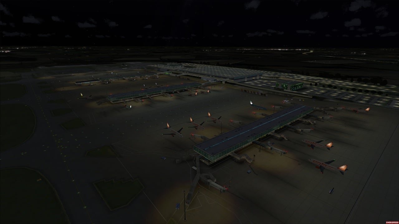 Finally, night shots. The night lighting at this airport looks really nice, I must say. It creates just the right atmosphere. The only thing which is a pitty, is the taxiway markings. These look like almost solid black in this night lighting.