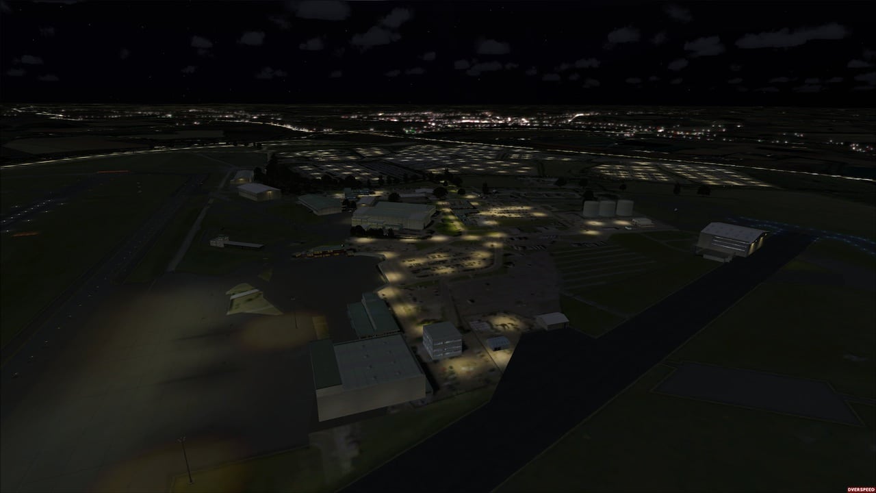 Finally, some night shots. By this time, it’s obvious how I like the taxiway and runway lights of UK2000, and as such this is something I of course would have liked to see here also. It simply adds that extra something. That doesn’t say that Eiresim’s Luton doesn’t cut it, for it sure does! The night lighting is very well done and looks extremely convincing. The terminals and especially the white hangars are beautifully textured at night. Besides, there is always something special about how all these smaller aircraft are all crammed together on this relatively small apron, all with their logo lights lit, forming a long line of lit vertical stabilizers. It’s a rare sort of sight, and one that Eiresim has recreated really well within the confines of FSX.