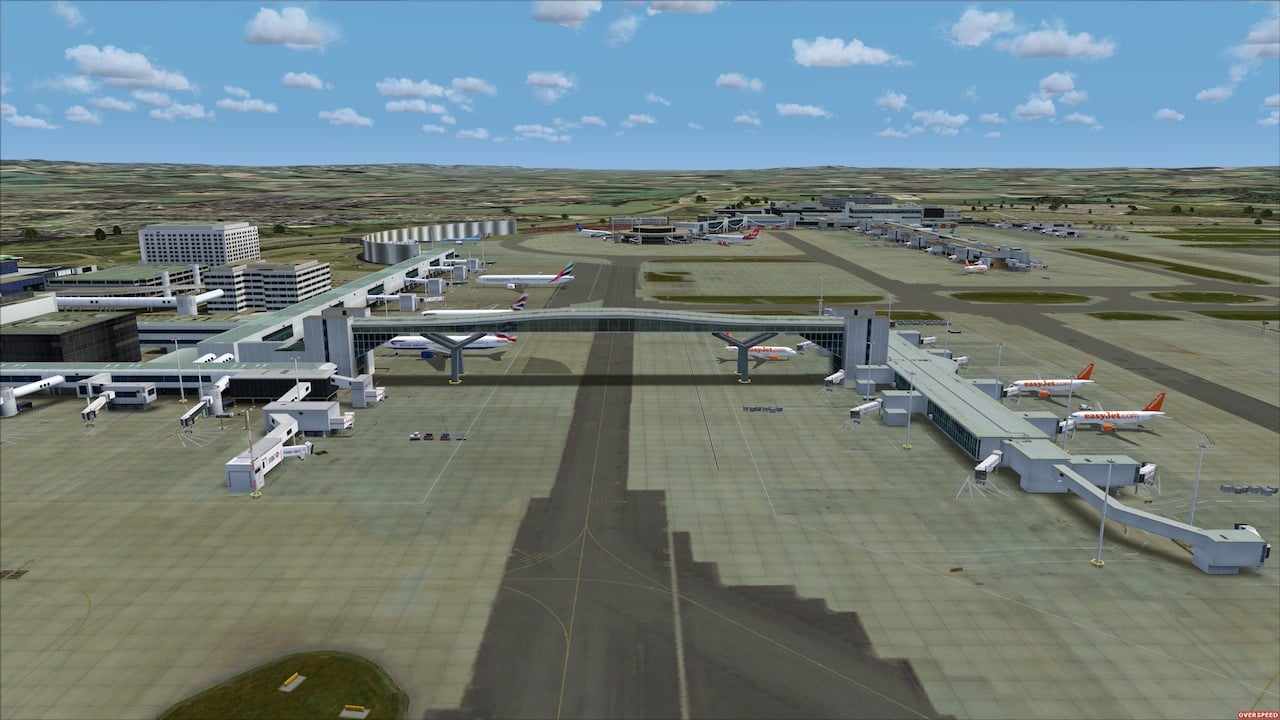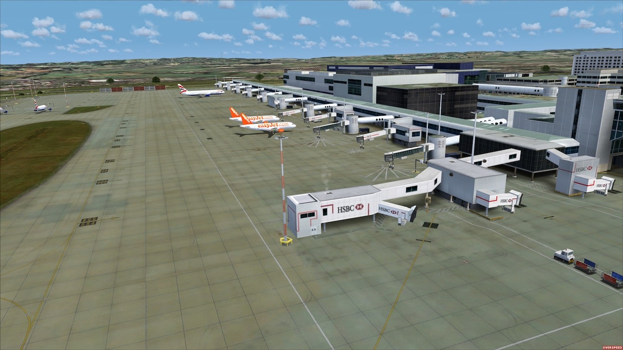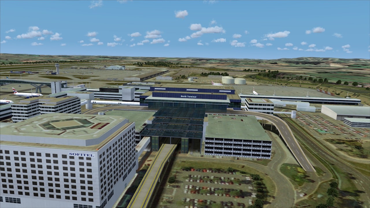 Of all the airports, Heathrow is probably most known because of it being so big and especially busy. Because of this, Heathrow looks better than average in default FSX. The buildings are more detailed and sport nicer texturing, but it still isn’t the holy grail of scenery design and it for sure can be improved on. The other airports, Gatwick, Luton, City and Stensted are even more basic, sporting the generic FSX airport buildings.