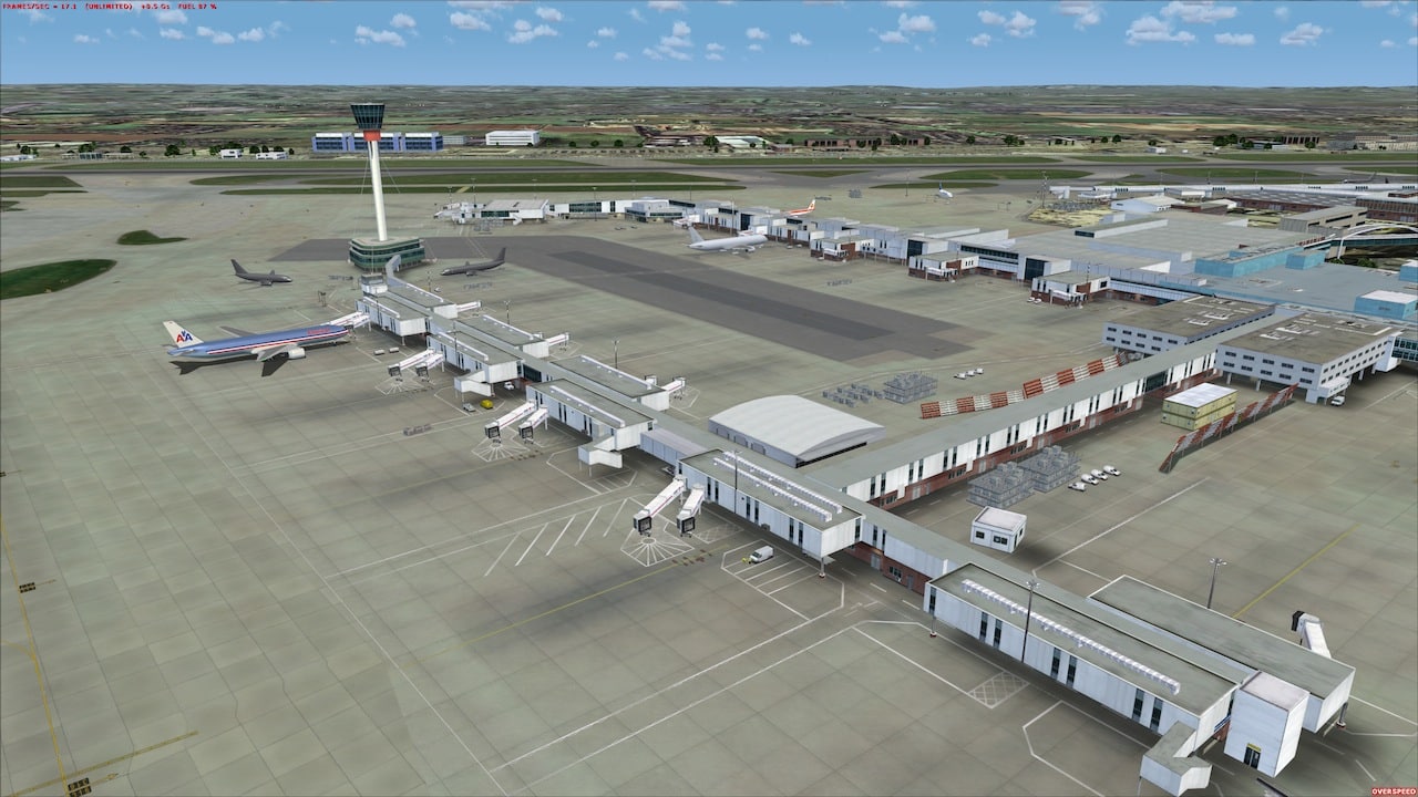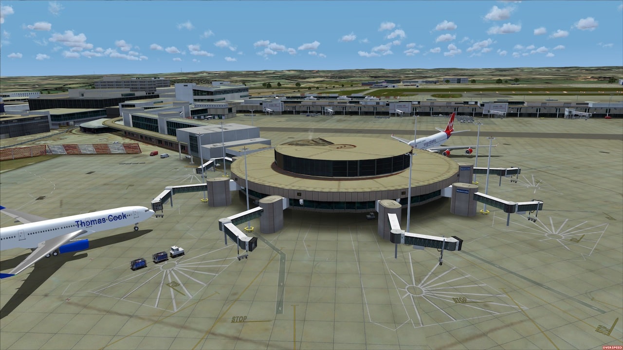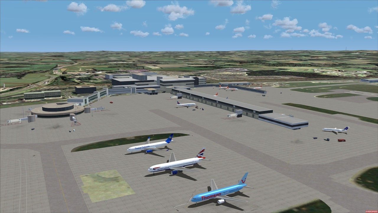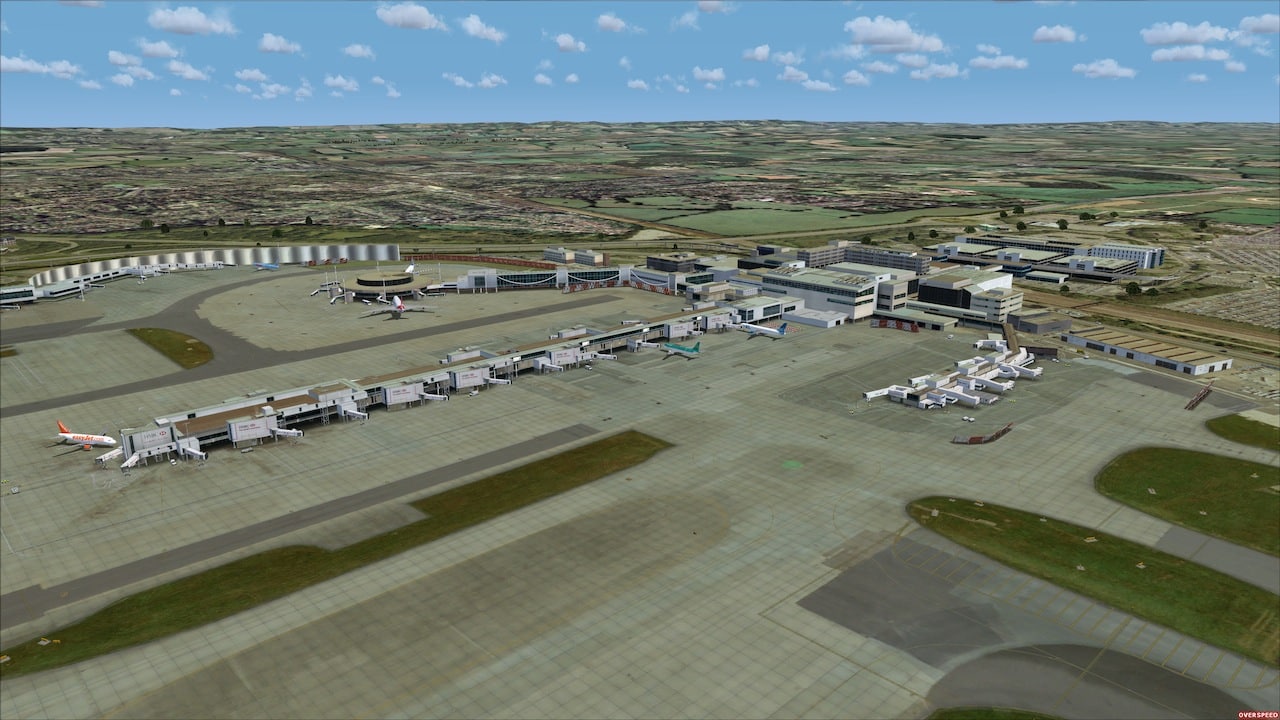 Of all the airports, Heathrow is probably most known because of it being so big and especially busy. Because of this, Heathrow looks better than average in default FSX. The buildings are more detailed and sport nicer texturing, but it still isn’t the holy grail of scenery design and it for sure can be improved on. The other airports, Gatwick, Luton, City and Stensted are even more basic, sporting the generic FSX airport buildings.