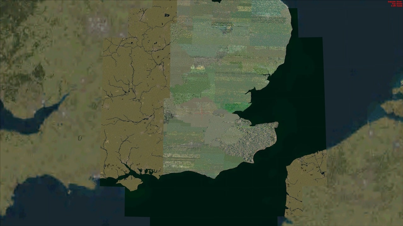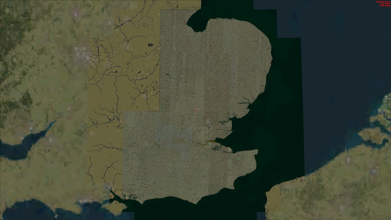 The colours we saw in downtown London are only one part of a patchwork of colours as we saw in the overview shot. The above shot shows that close to EGLL, we see a whole host of colours. If you look just up and to the left of the Trike Ultralight, you will see distinct, sharp borders between two different patches of colourings. I really wish that more effort was done to hide this sort of thing, as it looks a bit strange and messy.