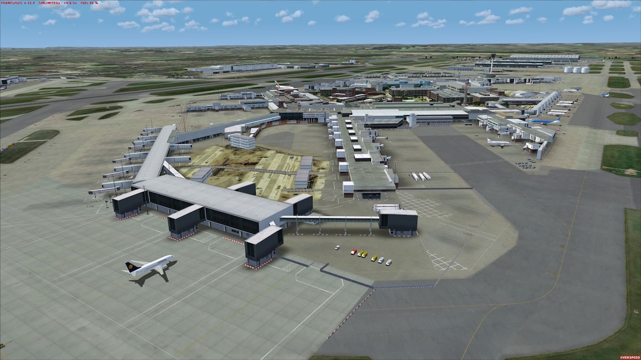 We have seen three London Heathrow sceneries. The Aerosoft Mega Airport Heathrow rendition, the UK2000 VFR Airfields Volume 1 rendition, and the UK2000 Extreme rendition. To summarize my findings, the Aerosoft rendition is very nice. It’s detailed and both modelling and texturing looks good. However, it is already very out-dated. Terminals that have been built are not in the scenery, and structures that were demolished are still present. The UK2000 VFR Airfields is overall about as out-dated as the Aerosoft rendition, plus it’s much less detailed. However, the UK2000 Heathrow Extreme rendition is up-date, detailed, and relatively good on FPS. As such, UK2000’s Heathrow Extreme will make it into Ultimate London.