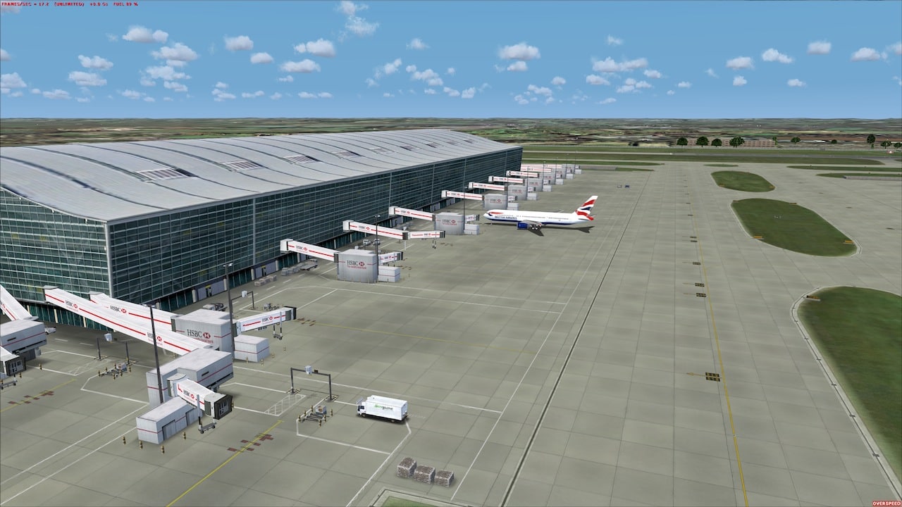 It’s probably not much of a surprise, but default FSX London is a bit sad compared to the real thing. The skyline of London is present, but many buildings are missing. And as for the aiports, except for Heathrow, the airports feature standard building as found in every other default airport. Besides that, they are often outdated, as the sim is from 2007 and in the past four years lots has been happening, especially at Heathrow.