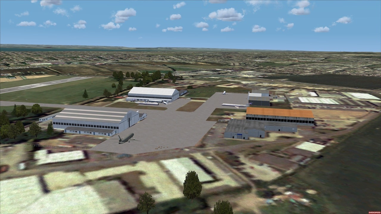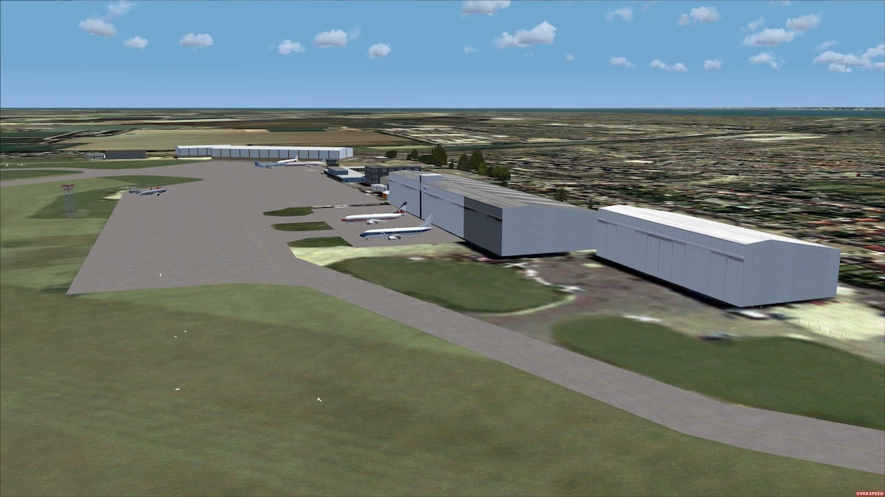 This area looks pretty good, I must say. With buildings all over and it being nicely filled up with crates, aircraft, aircraft parts and some nondescript pieces of equipment, it looks sort of lively and busy, in a nice, messy way that I tend to miss in some of the bigger airport sceneries out there for FS. In that sense, I find it somewhat of a pity that there is no more detailed ground photo layer on which the airport has been built, but perhaps UK2000 will make a true Extreme version of Southend airport.