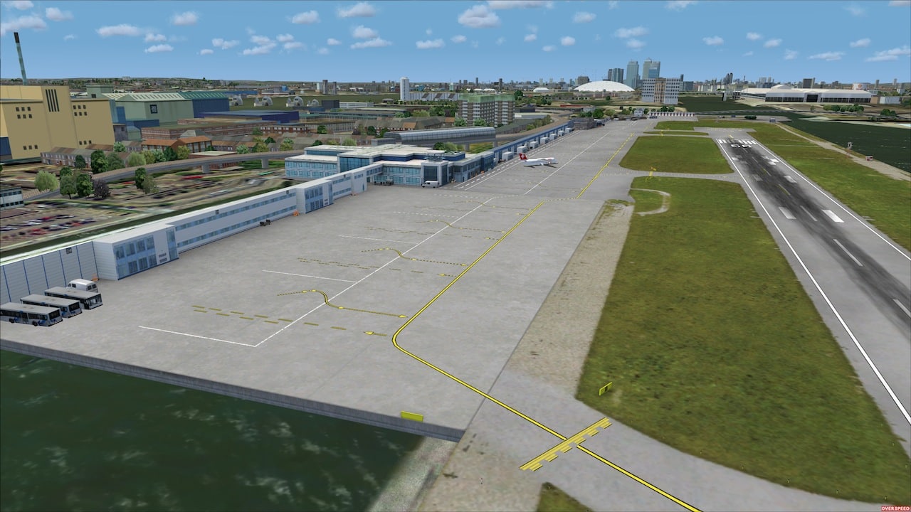 We have seen previously in the other VFR Airfields airports what we can expect: low detail, but otherwise pretty accurate depictions of the airports. London City is, by itself, already a very small and rather minimalistic airport without much going on in terms of airport buildings. However, VFR Airfields makes it even less: