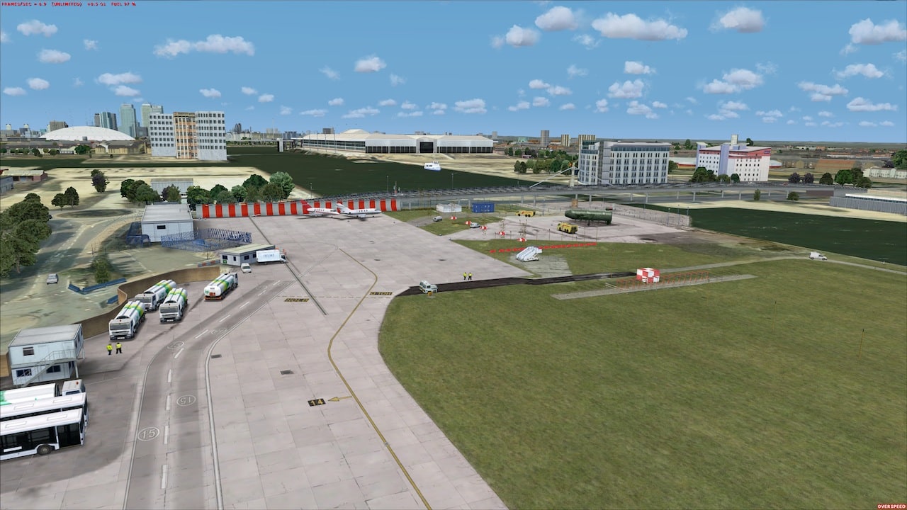 The above shot gives an overview of not only the airport, but also the rest that the scenery includes, for it’s not just the airport, it’s lots of the immediate surroundings too. We will stick with the airport for now, but the surroundings will be shown later too. JHust keep in mind that what you see here is the version that was made compatible with London VFR (reviewed earlier) by taking out some of the London VFR versions of buildings.