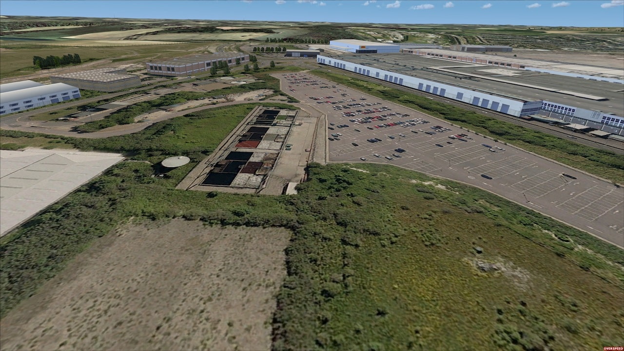 The training area includes more of the detail we saw earlier. Notice the detail of the fuel trucks, with their really nice texturing. The lead-in lights and fences look rather good. Also notice the pylons at the corners of the roads that lead to the fire training area. The fire training mock-up aircraft is very well textured. Finally, although a bit far away, the bridge behind the training area includes some stunning detail in the form of a bridge guard’s look-out tower and levers to keep traffic off the open bridge. Especially those levers are stunningly detailed.