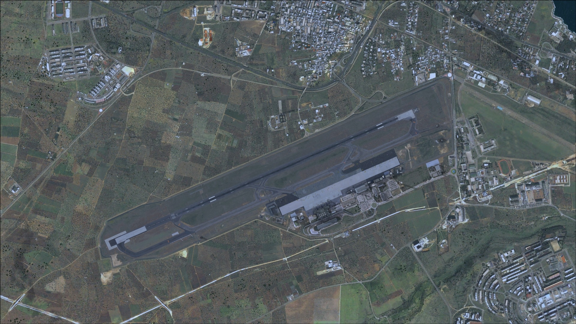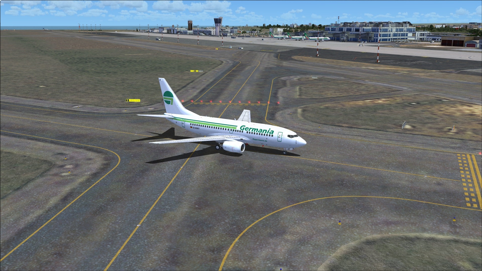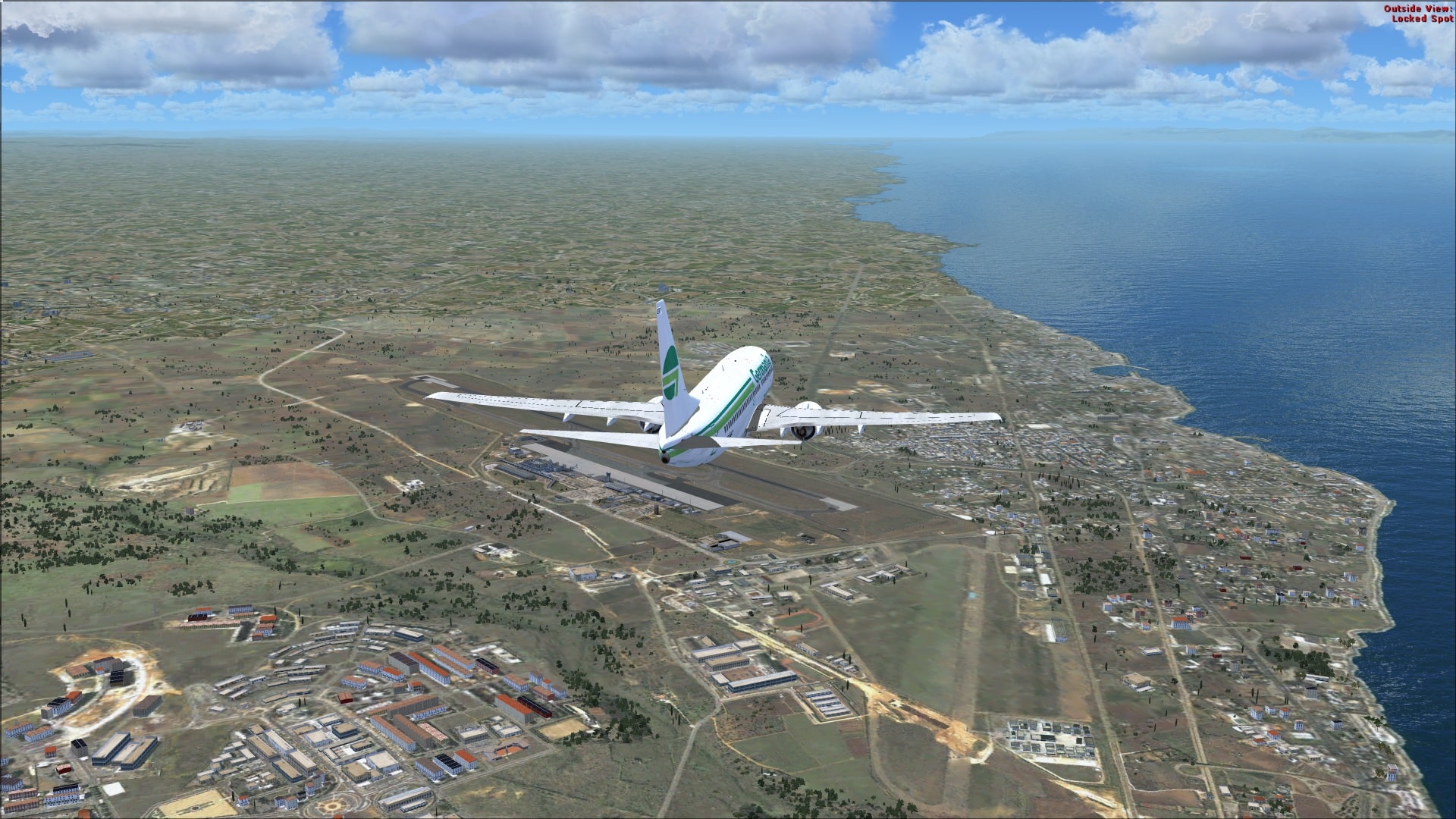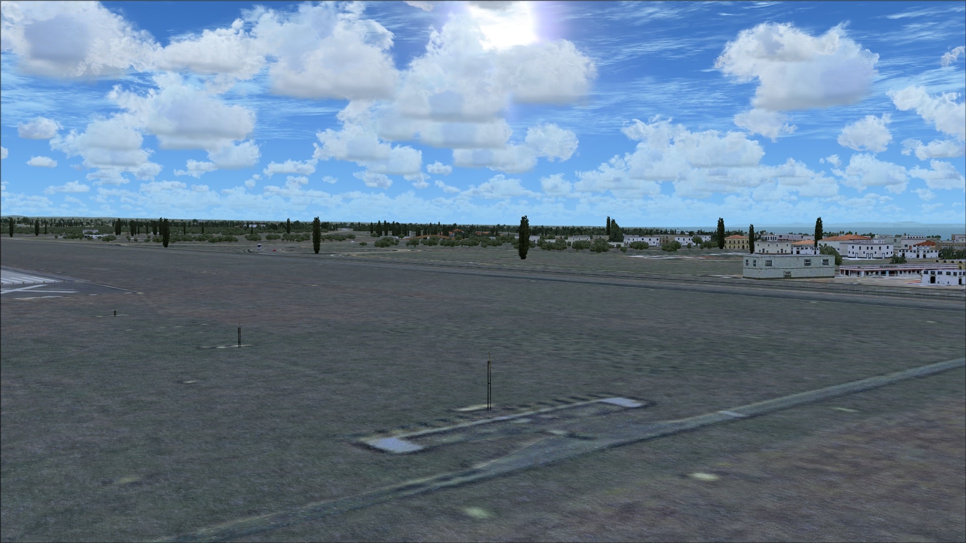 From overhead the scenery coverage area is clearly discernible. You can easily make out the old runway, the nearby railway yard, the small towns that border the airport and the accurate coastline.
