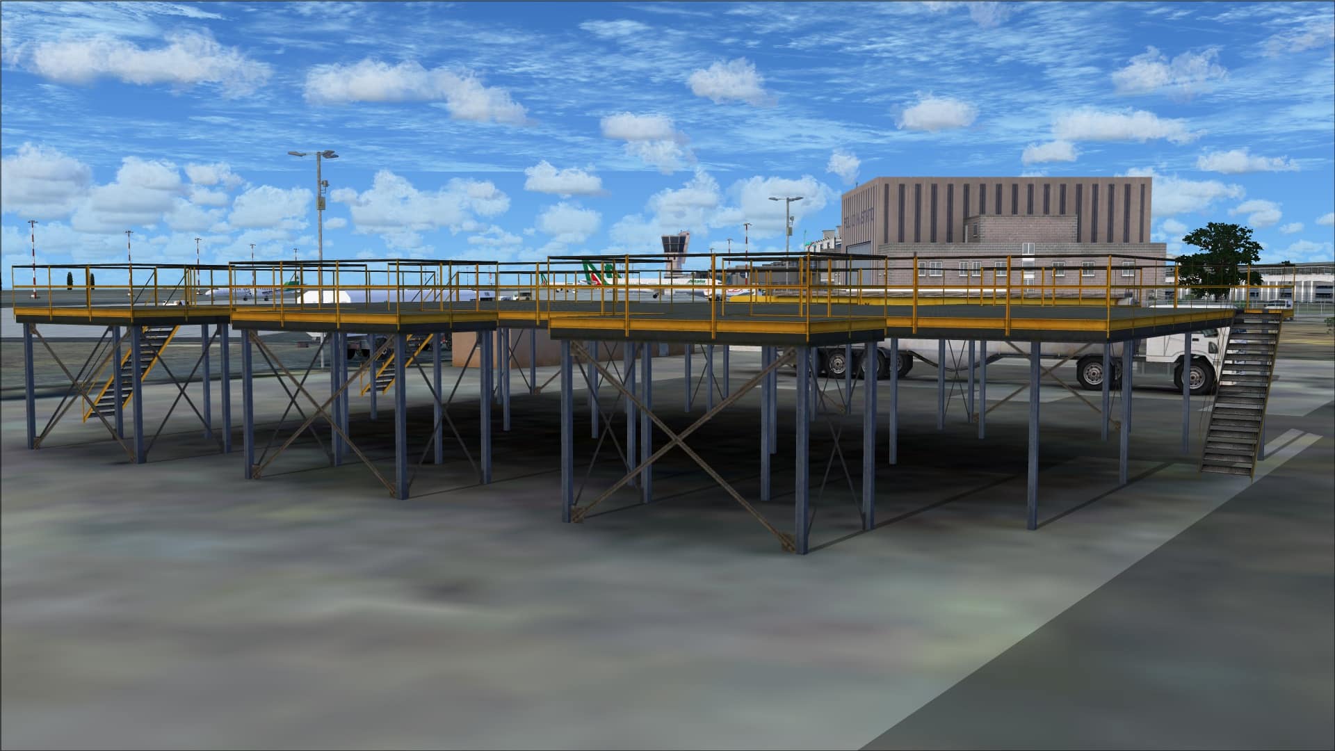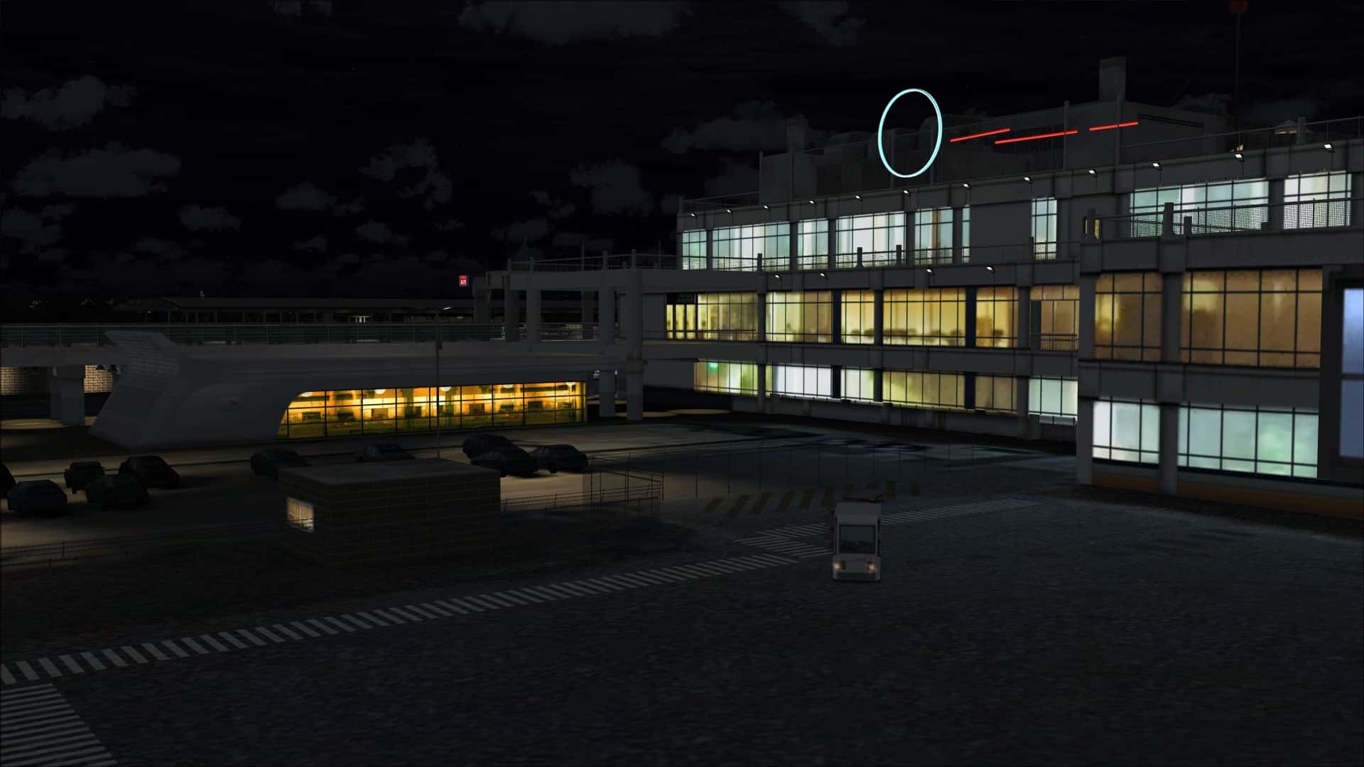 This was one of the best parts of the entire scenery. I’d like to start with the main passenger terminal building, what they’ve done with this building is quite impressive. Overall the quality is outstanding, from every angle it is interesting and catches the eye. They’ve included many intricate details such as balcony railings and wall mounted light fixtures plus on the underside of the elevated roadway that goes to the building’s entrance there are light fixtures suspended from the ceiling. It is in a case like this that I’d recommend getting a first person “aircraft” such as BOB, which is free to download from Orbx, to better explore the airport. This is the only way you can really get to see all of the fine work that the developer put into this project.