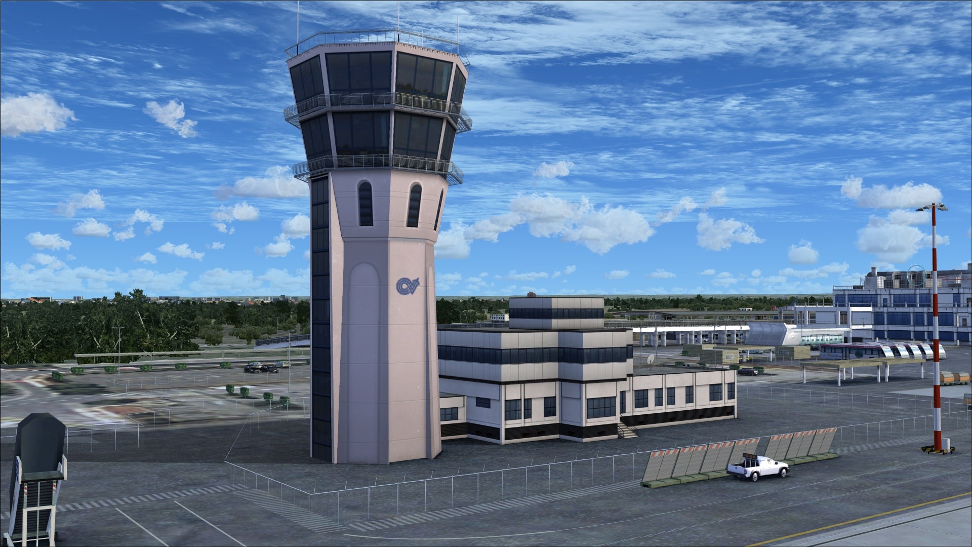 This is an airport that has a very simple layout; you have a single runway 07/25 which is 8,005ft long and to the south are the aprons and then the airport’s buildings. They’ve taken that simplicity and turned it around by adding an impressive amount of detailing to the airport’s buildings and objects. You’ll see in my descriptions and screenshots that the amount and type of detailing they’ve included, in many areas, goes way beyond what you might have been accustomed to seeing in other airport addons.