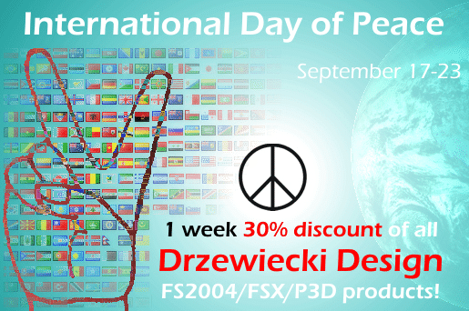 To commemorate the International Day of Peace on 21st September 2012, Drzewiecki Design are holding a one week sale from the 17th-23rd September, with 30% off their range of FS9, FSX and P3D sceneries and scenery objects.