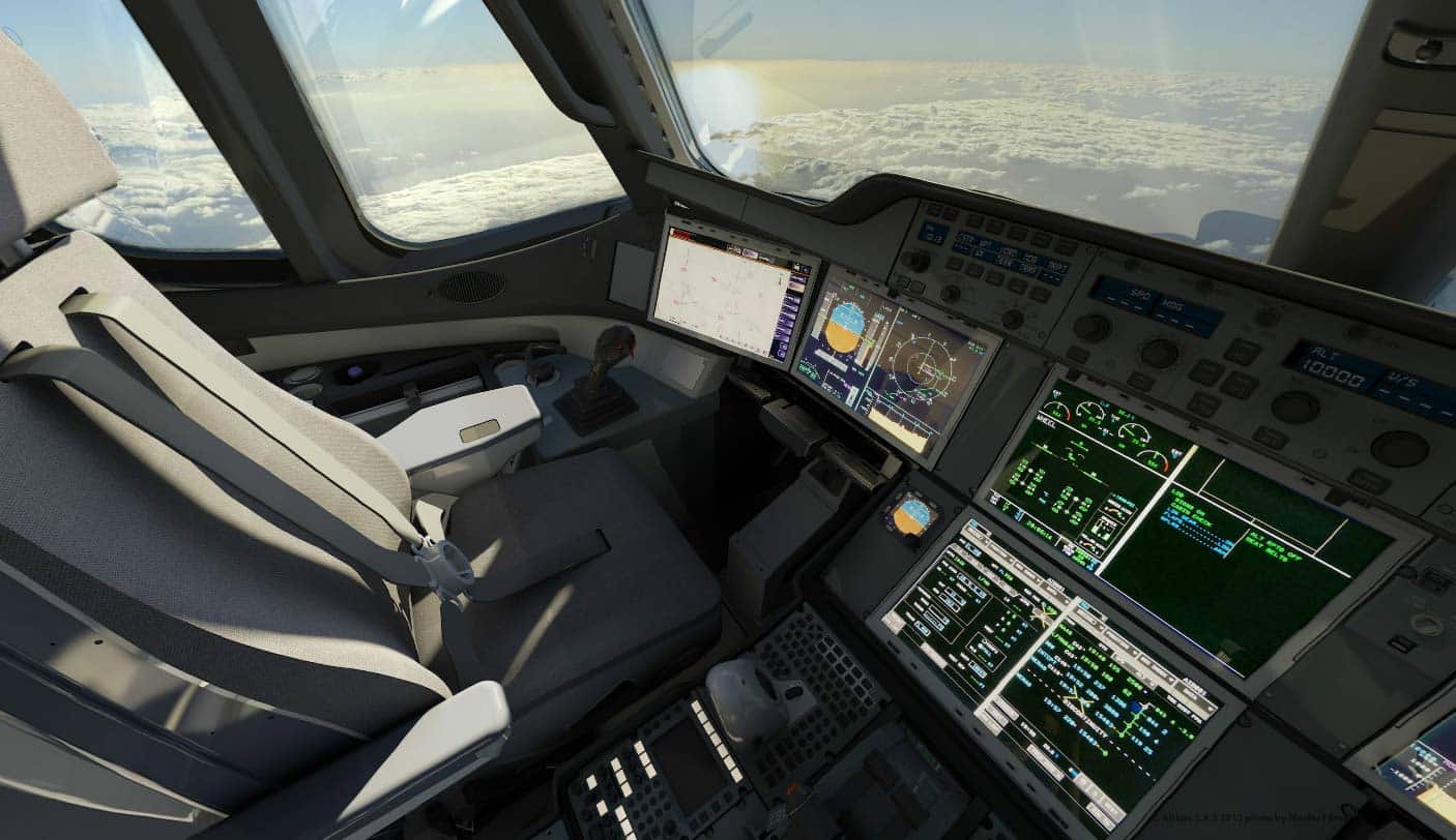 Make your first steps inside the Airbus A350 cockpit in a 360° view published by the manufacturer on their new official website.