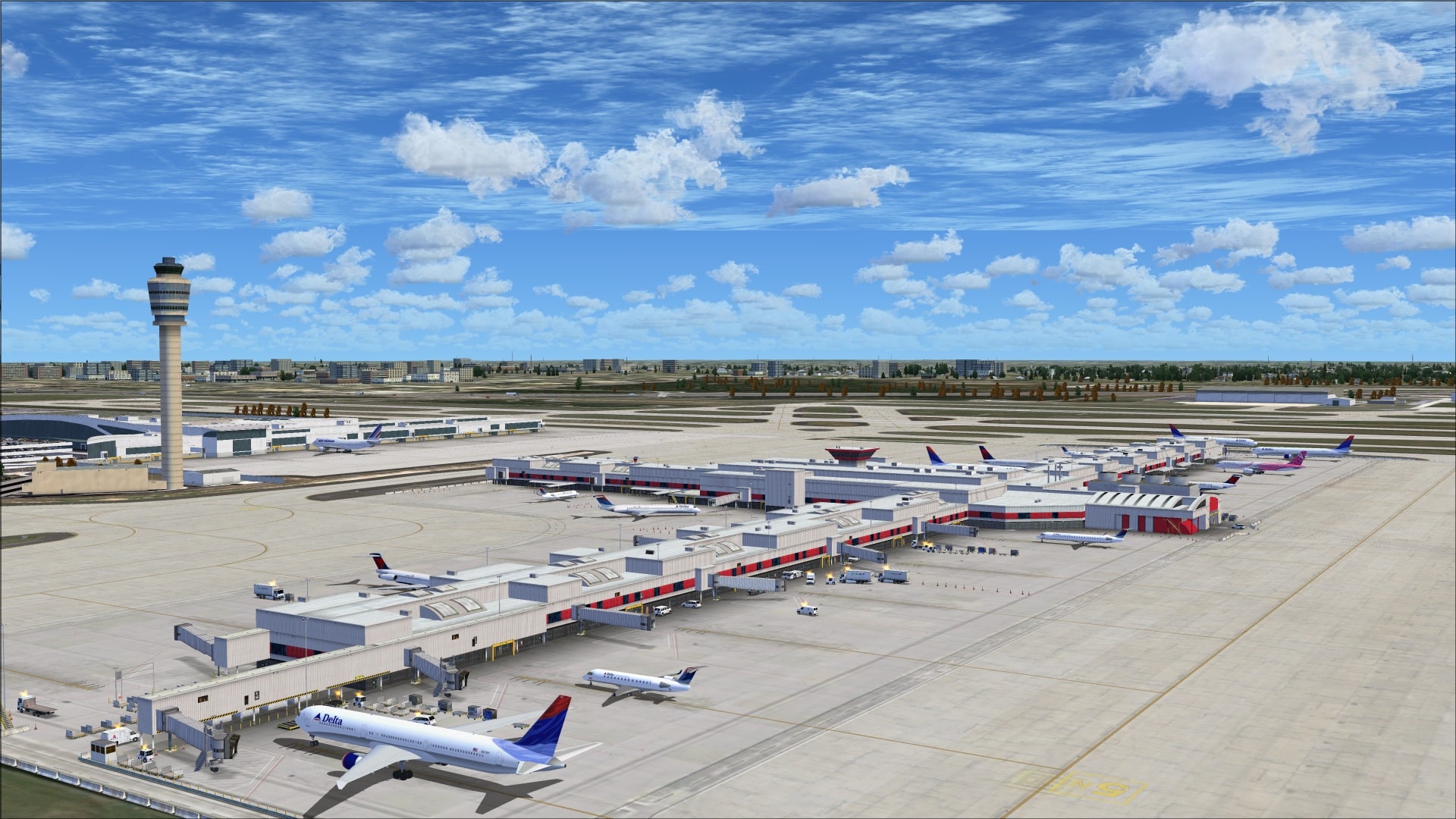 Extras: Lots of static and animated vehicle traffic at the airport.