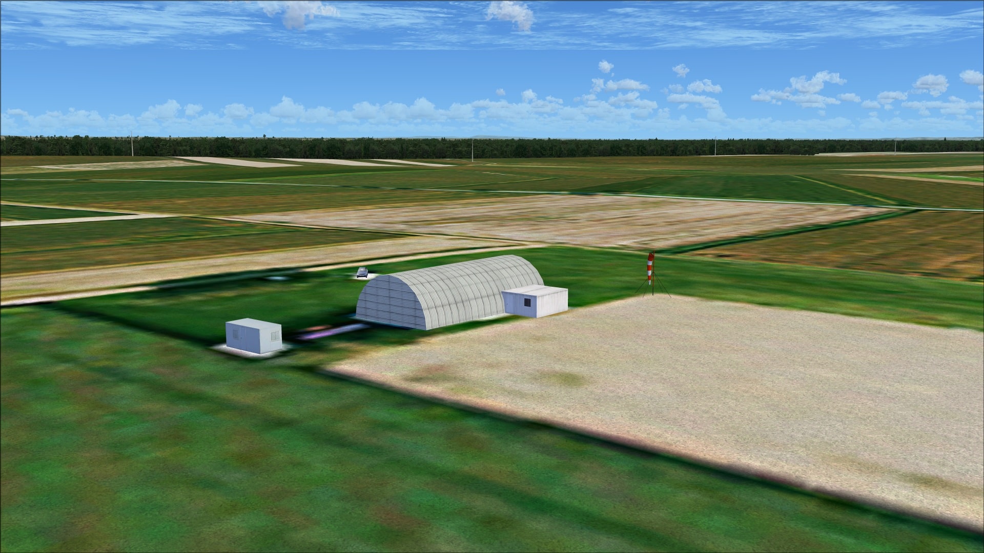 How have they augmented the included airfields? Hard surface textures used at these airports are the same basic quality as those found in FSX. Additional objects such as runway/taxiway markers, vehicles and wind socks have been included to boost the ambiance. The buildings are only meant to be representative of what you might find at each one. What they have done is definitely a big improvement over the default rendering found in FSX.