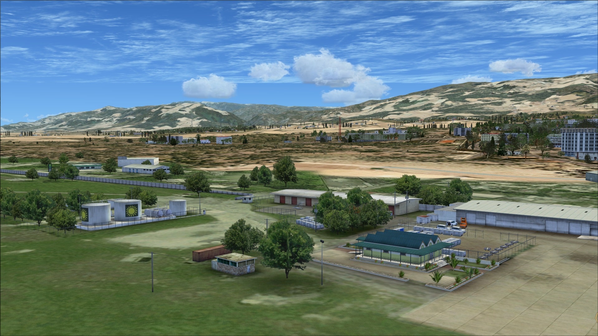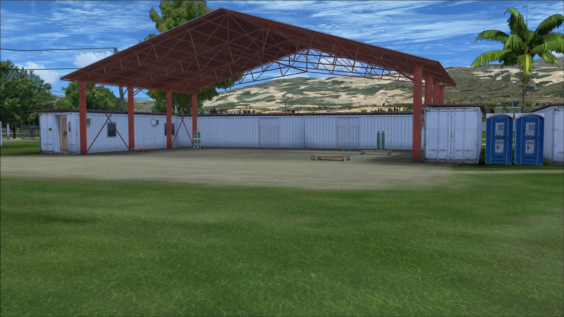 The downside to this is the same as I see in many other scenery projects, many objects appear in the ground textures that aren’t recreated with discrete 3d objects. A prime example of this is in the UN logistics area of the airport. We can see in the photo textures some containers and other objects yet there are none, only some small buildings and sheds.
