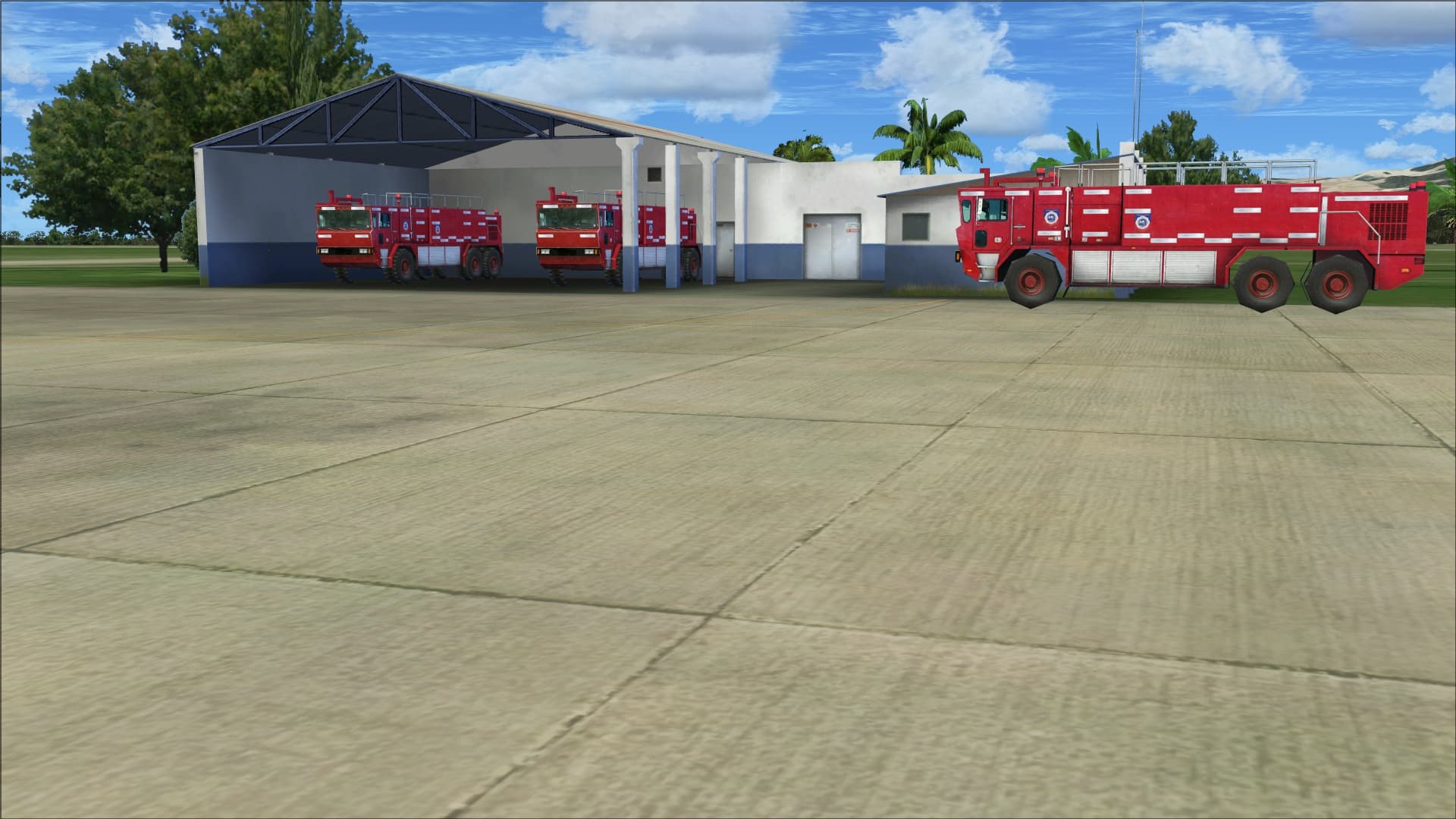 Like most scenery addons there were a few minor problems. With this airport they weren’t too noticeable but they were there. Some of the ground lighting fixtures along the runways and taxiways were missing. They did include the lighting at night but it was minus the fixtures. I also saw a problem with the fire truck image textures; the tires were octagonal instead of round and depending on your viewing angle the tire textures would disappear. There was also a problem with the placement of the VOR/DME when compared to satellite photographs, they had it situated on a service road that ran near the southern boundary of the airport rather than further up near the runway.