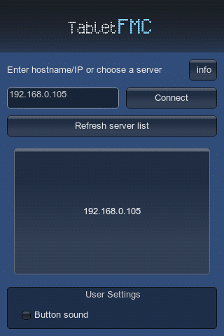 When the app is run, it displays a screen asking for the IP address or machine name of the client host. Deciding to push my luck, I entered the Windows networking name for my PC and, slightly to my surprise, the client picked it up first time. There is also a search button (“Refresh server list“), which I have used and which also detected my PC first time.